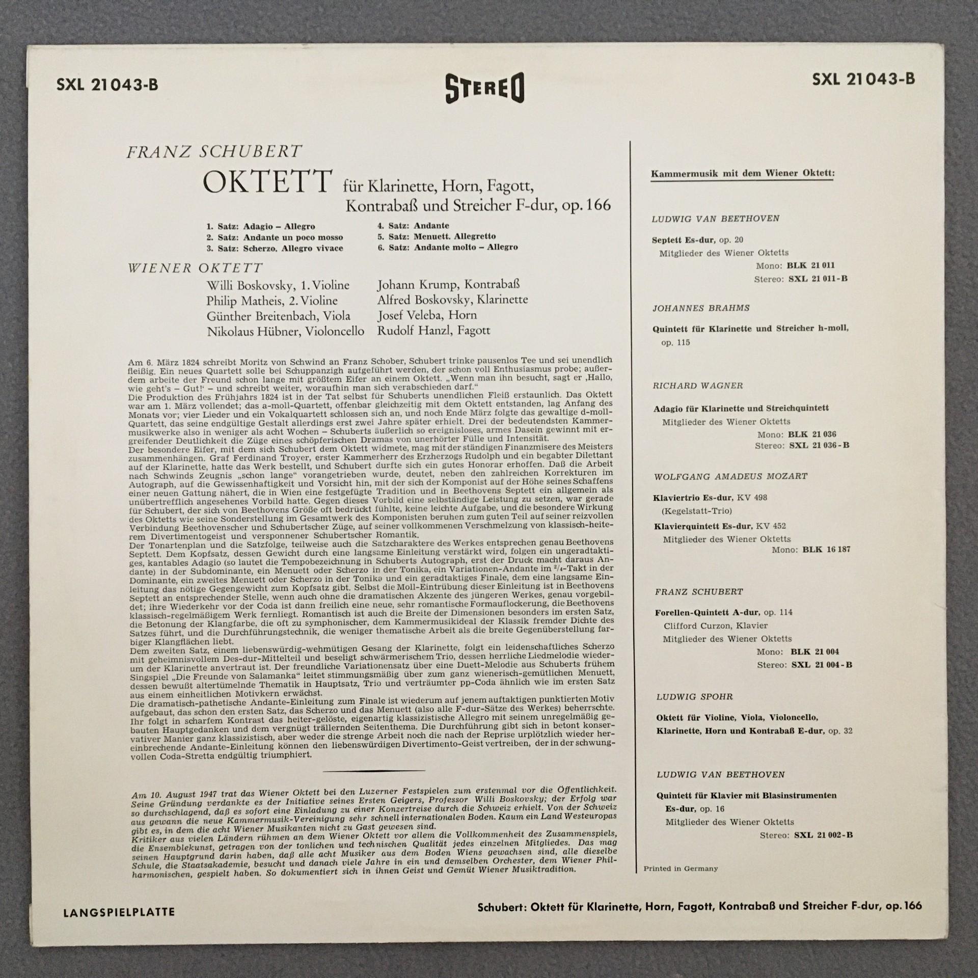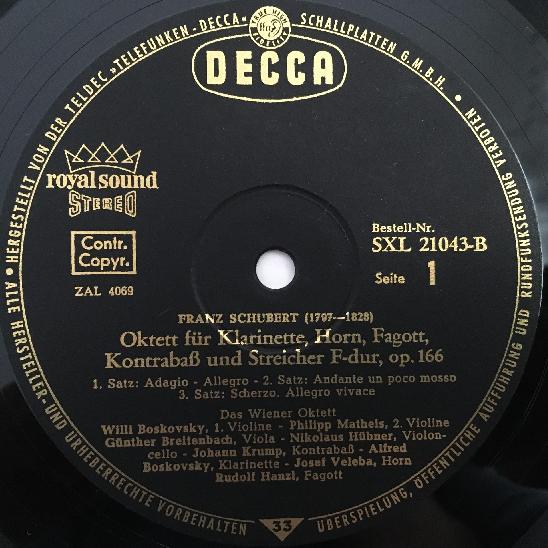 Q299 Schubert Octet Boskovsky Matheis Vienna Octet DECCA SXL 21 043-B Stereo