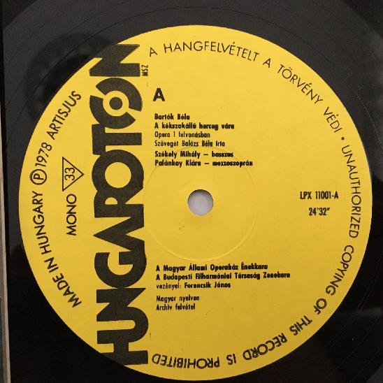 Q313 Bartok Bluebeard´s Castle Szekely Palankay Ferencsik Hungaroton LPX 11001