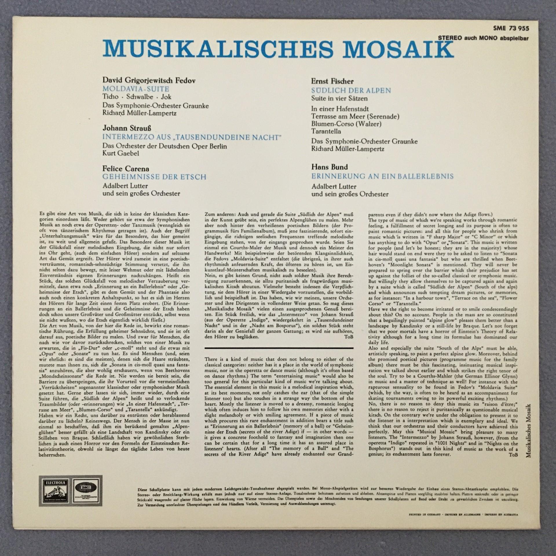 Q315 Musikalisches Mosaik Fedov J. Strauss Carena Lutter EMI SME 73 955 Stereo