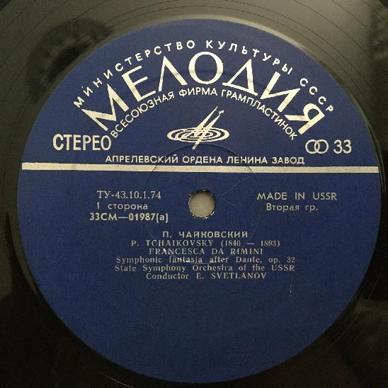 Q320 Tchaikovsky Francesca da Rimini Hamlet Svetlanov Melodiya CM 01987-88 Stere