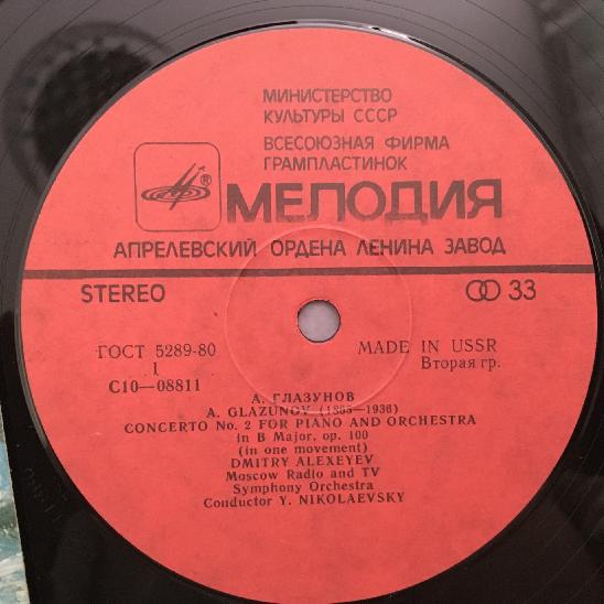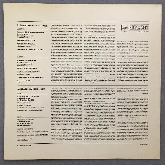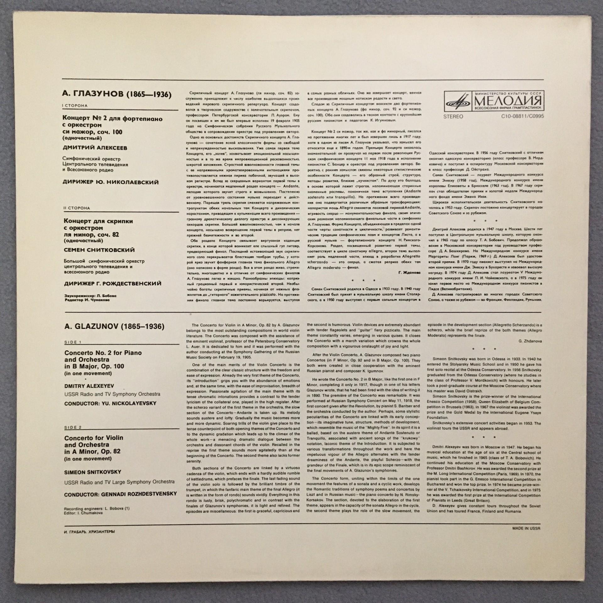 Q322 Glazunov Concertos Alexeyev Rozhdestvensky Melodiya C10-08811/C0995 Stereo