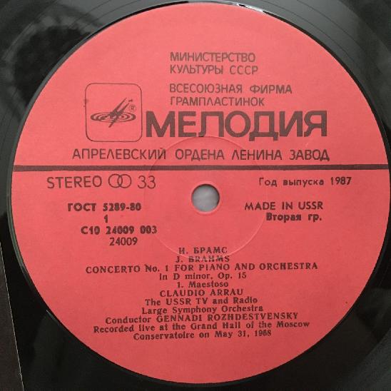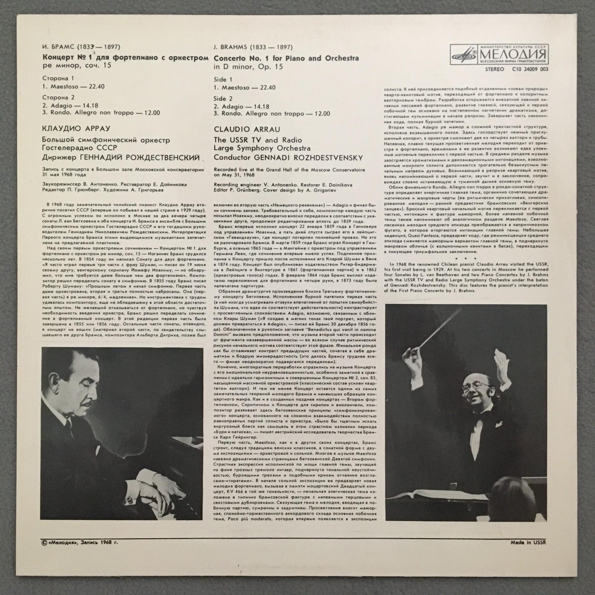 Q323 Brahms Piano Concerto No.1 Arrau Rozhdestvensky Melodiya C10 24009 003 St