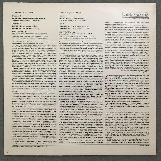 Q336 Franck Symphonic Pieces Chorale Krämer Organ Melodiya C10 28911 009 Stereo