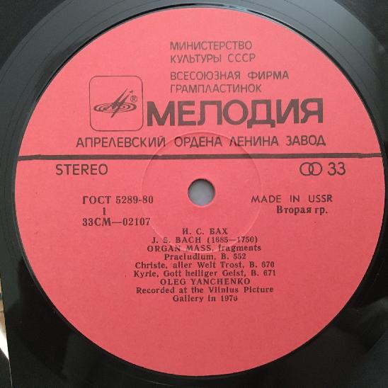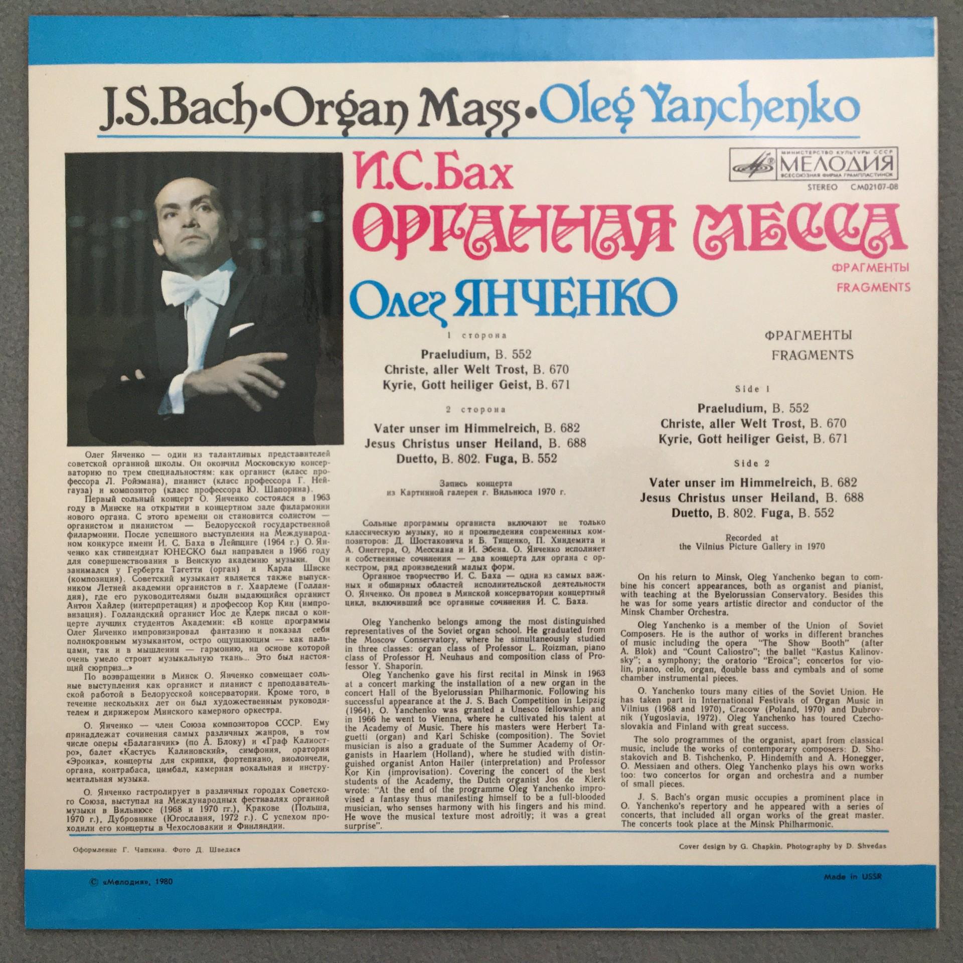 Q337 Bach Organ Mass Yanchenko Melodiya CM 02107-08 Stereo