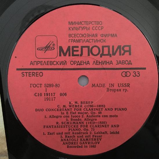 Q343 Weber Schumann Brahms Gavrilov Kamyshev Melodiya C10 19117 006 Stereo