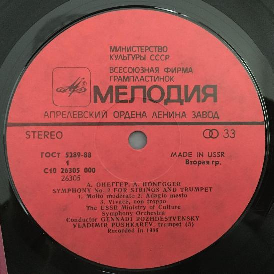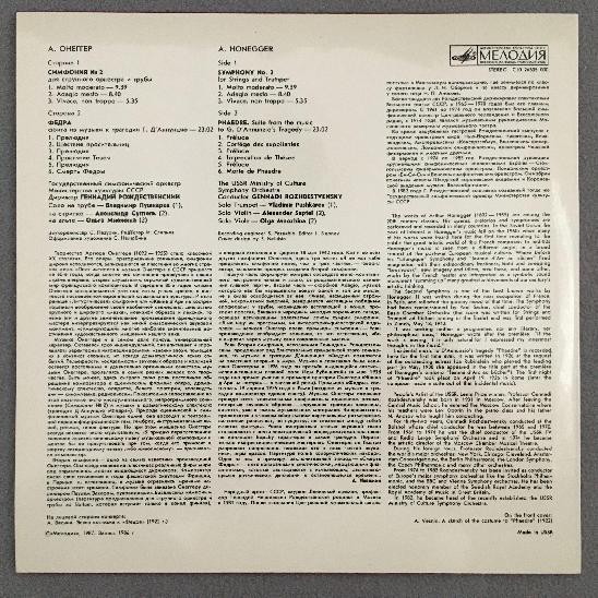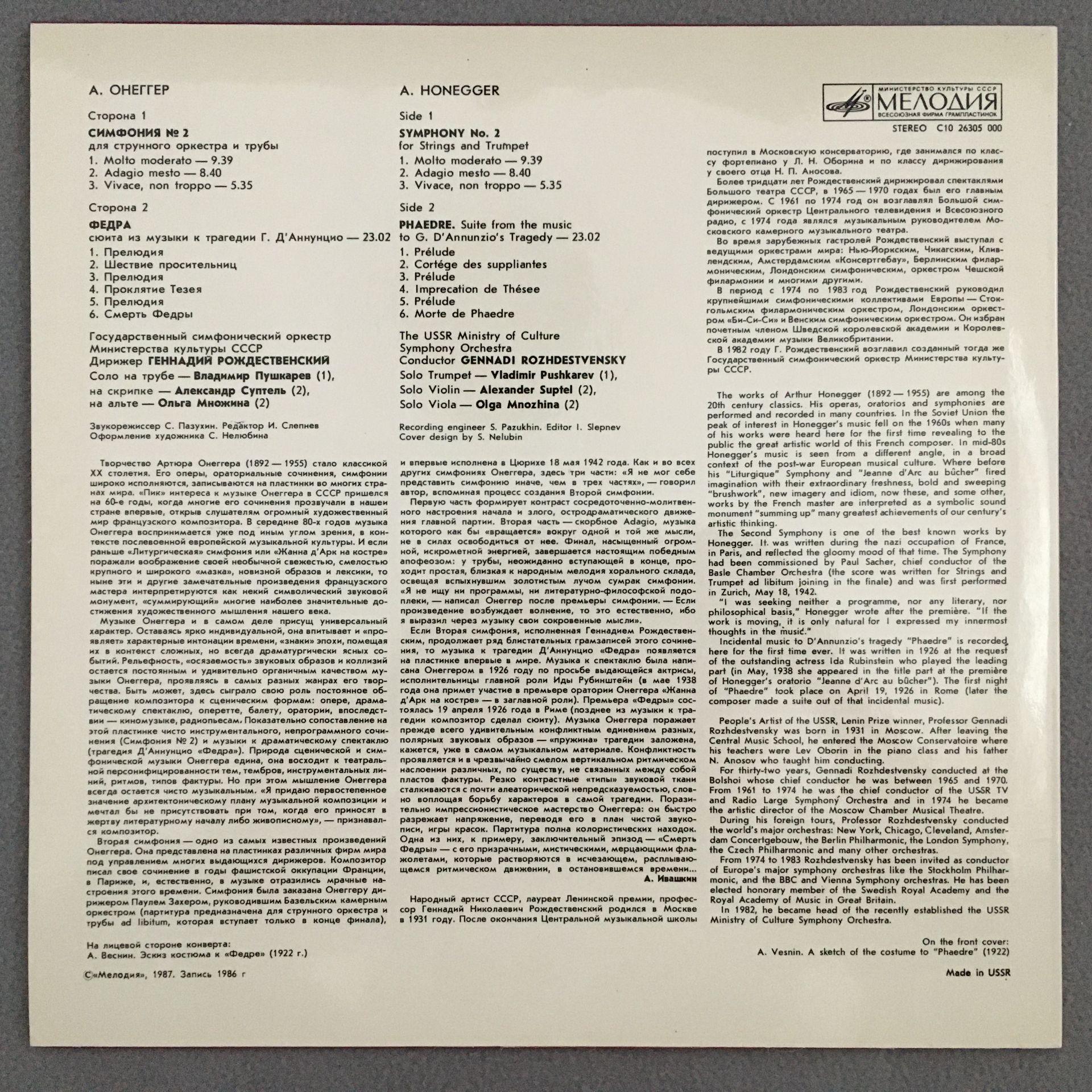 Q344 Honegger Symphony Phaedre Rozhdestvensky Melodiya C10 26305 000 Stereo