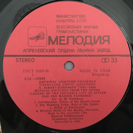 Q348 Rimsky-Korsakov Prokofiev Suite Kitayenko Melodiya C10-14949-50 Stereo