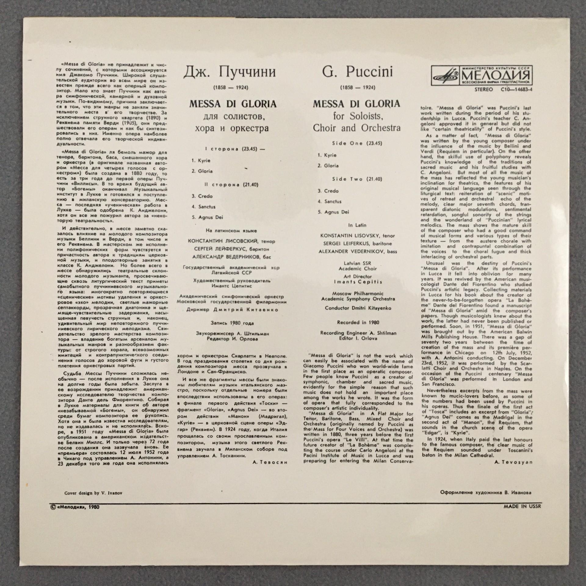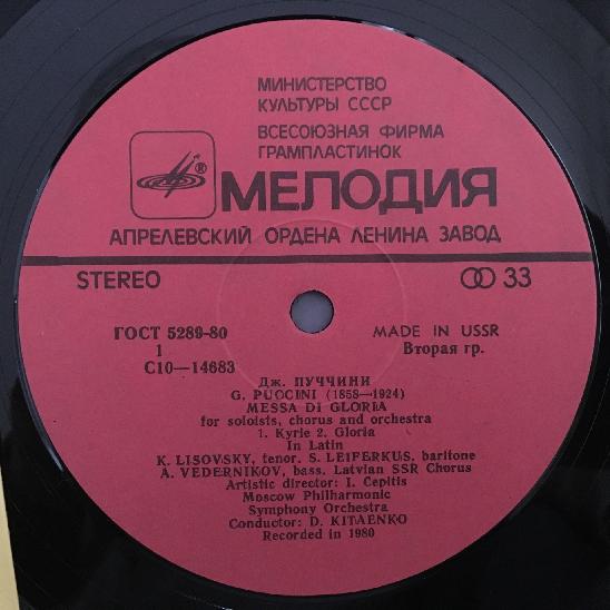 Q349 Puccini Gloria Mass Lisovsky Kitayenko Melodiya C10-14683-4 Stereo
