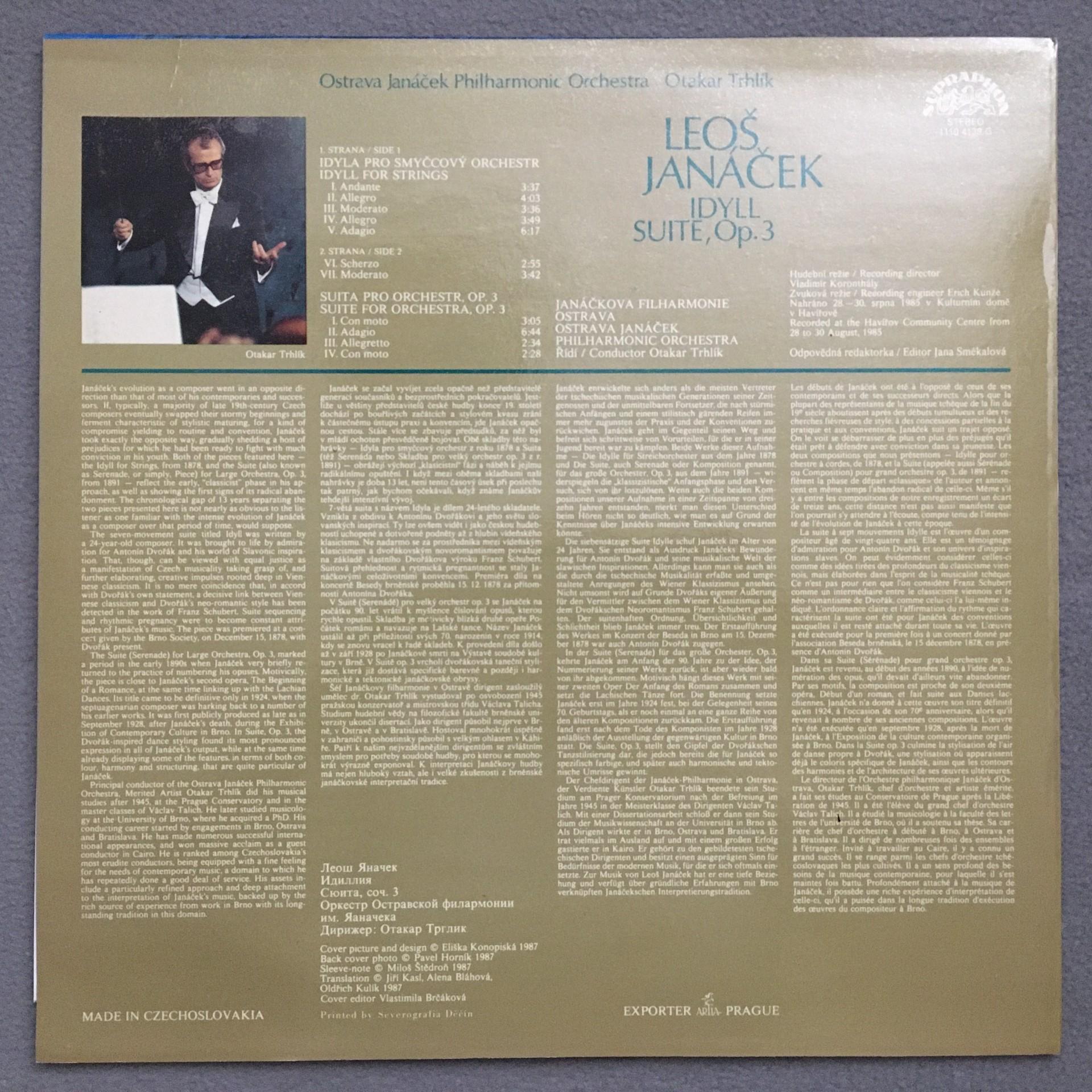 Q376 Janacek Idyll Suite Op.3 Trhlik Supraphon 1110 4139 G Digital Stereo