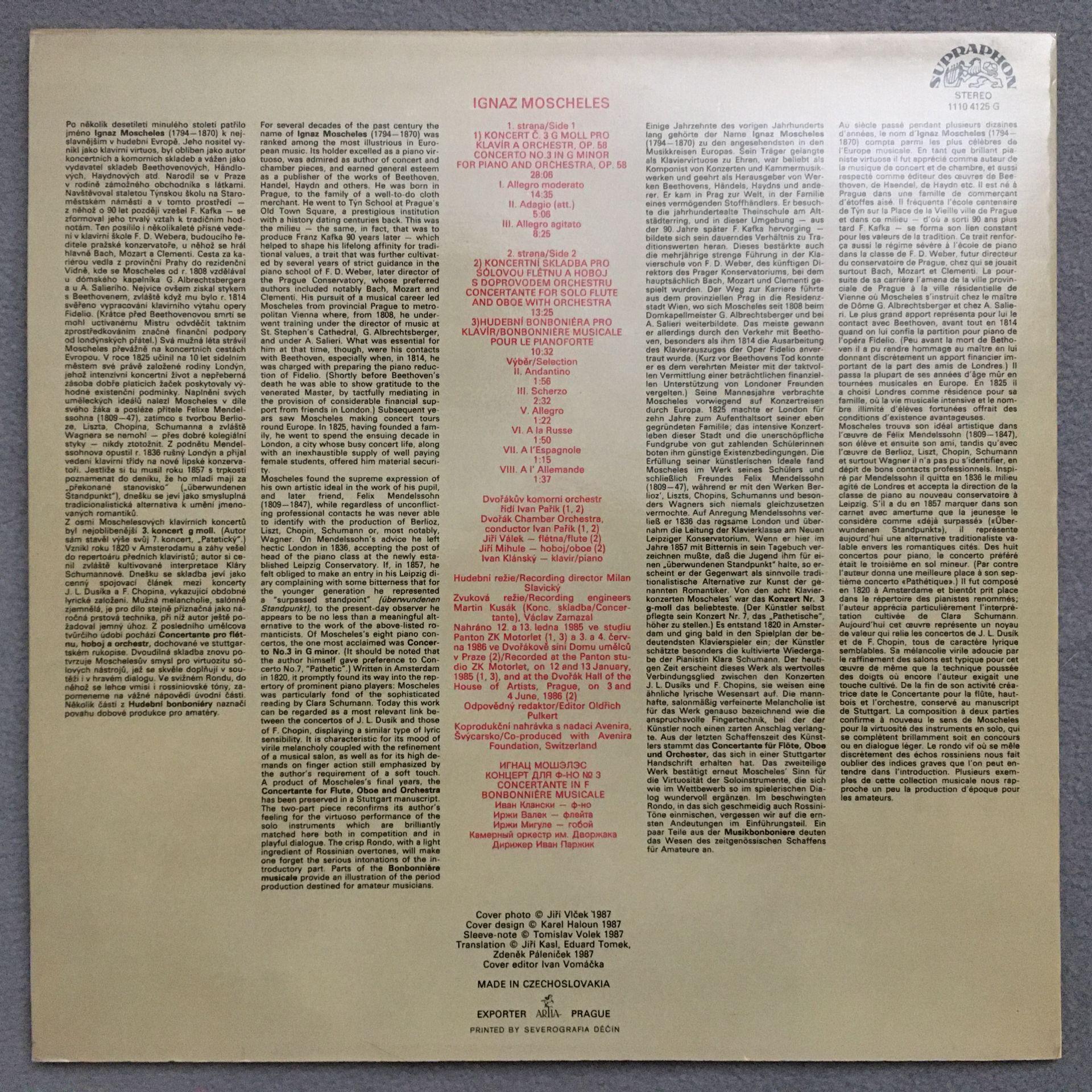 Q377 Moscheles Piano Concerto Klansky Parik Supraphon 1110 4125 G Digital Stereo