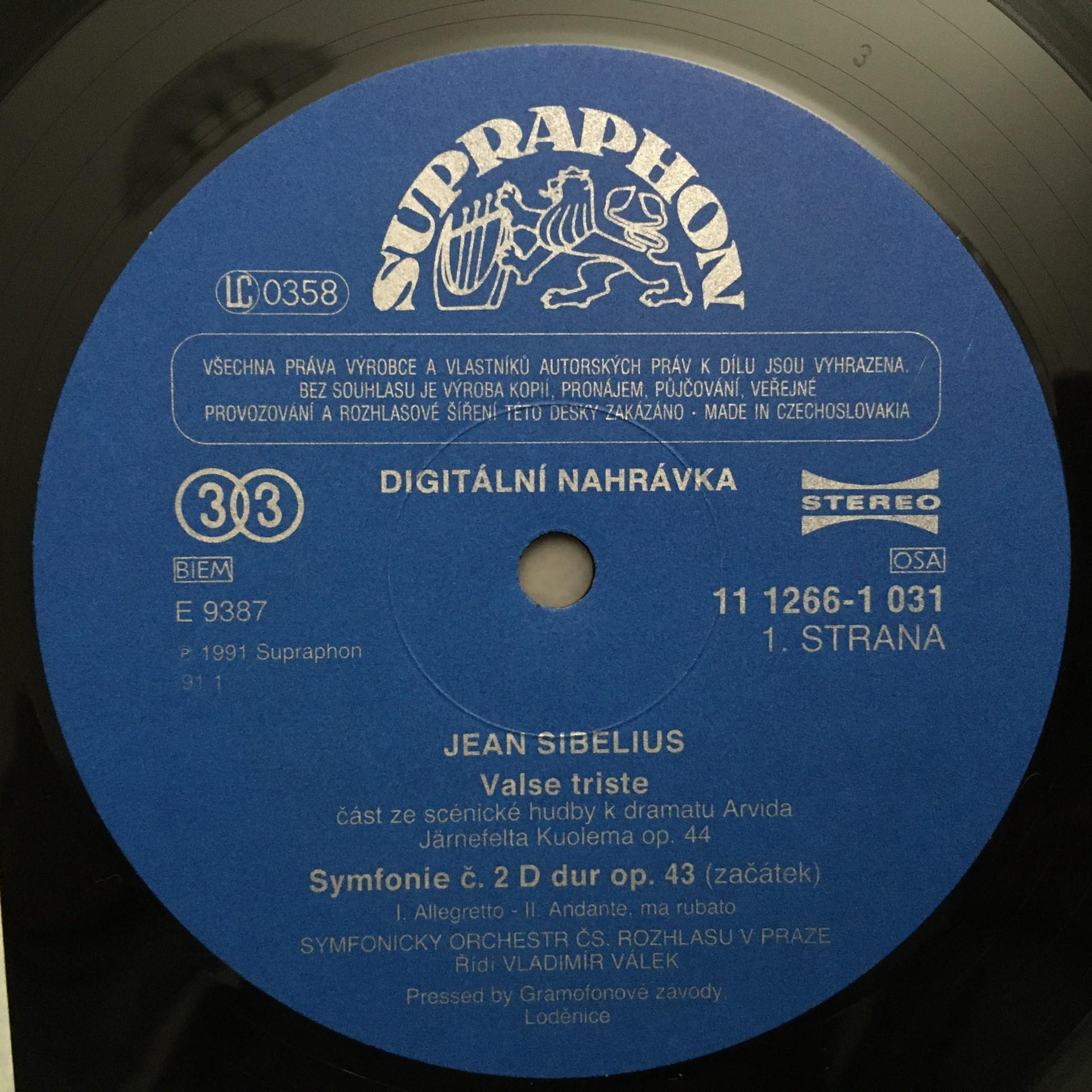 Q378 Sibelius Symphony No.2 Valek Supraphon 11 1266-1 Digital Stereo
