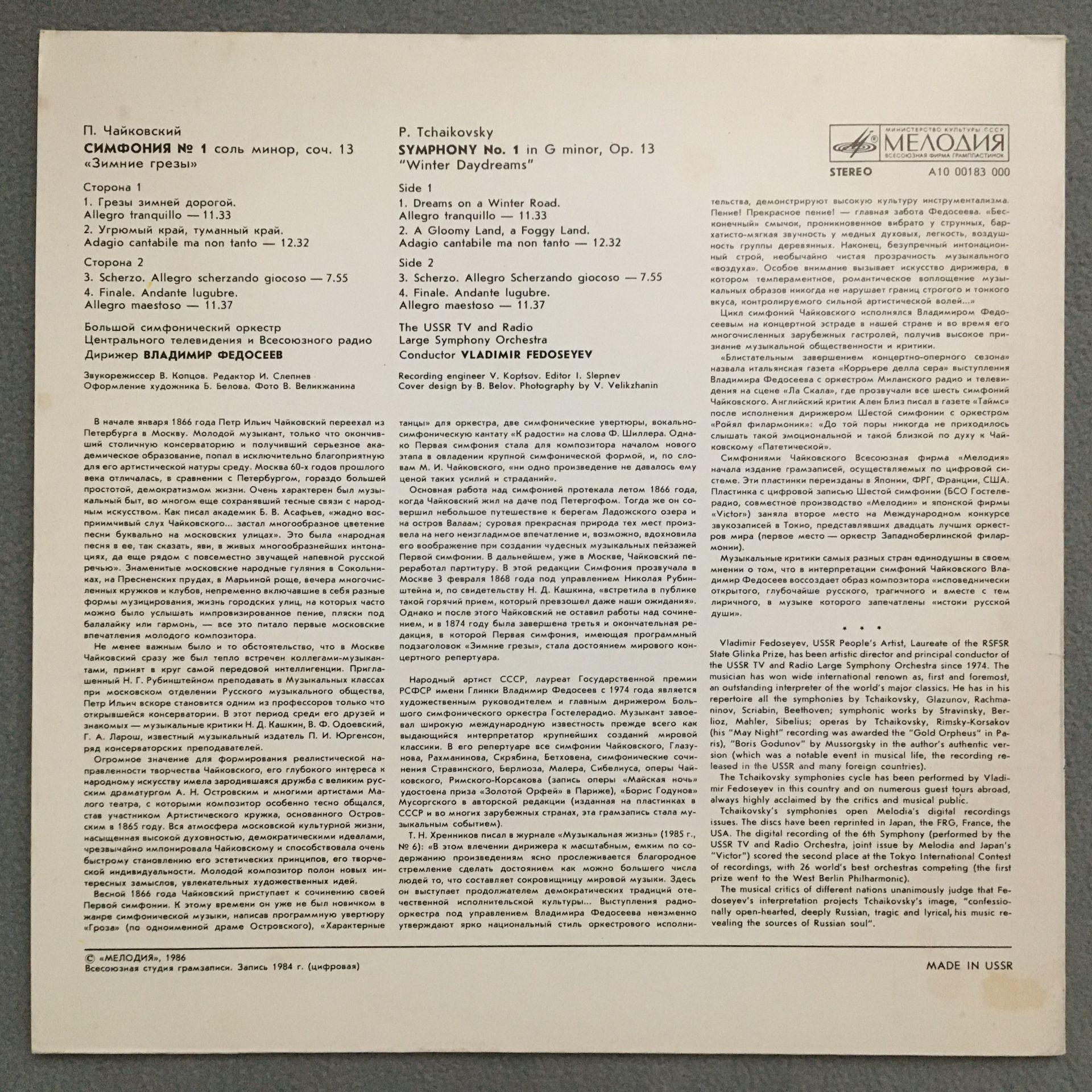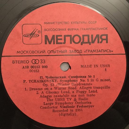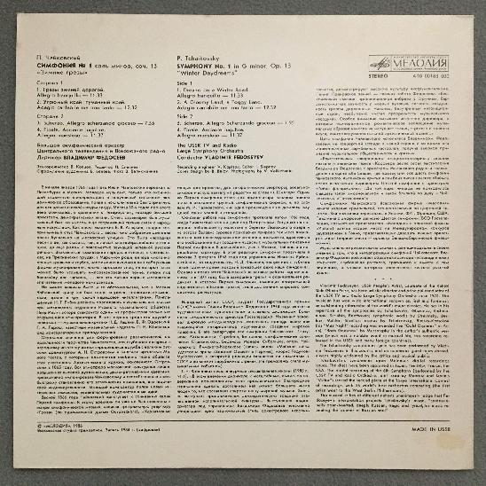 Q380 Tchaikovsky Symphony No.1 Fedoseyev Melodiya A 10 00183 000 Stereo