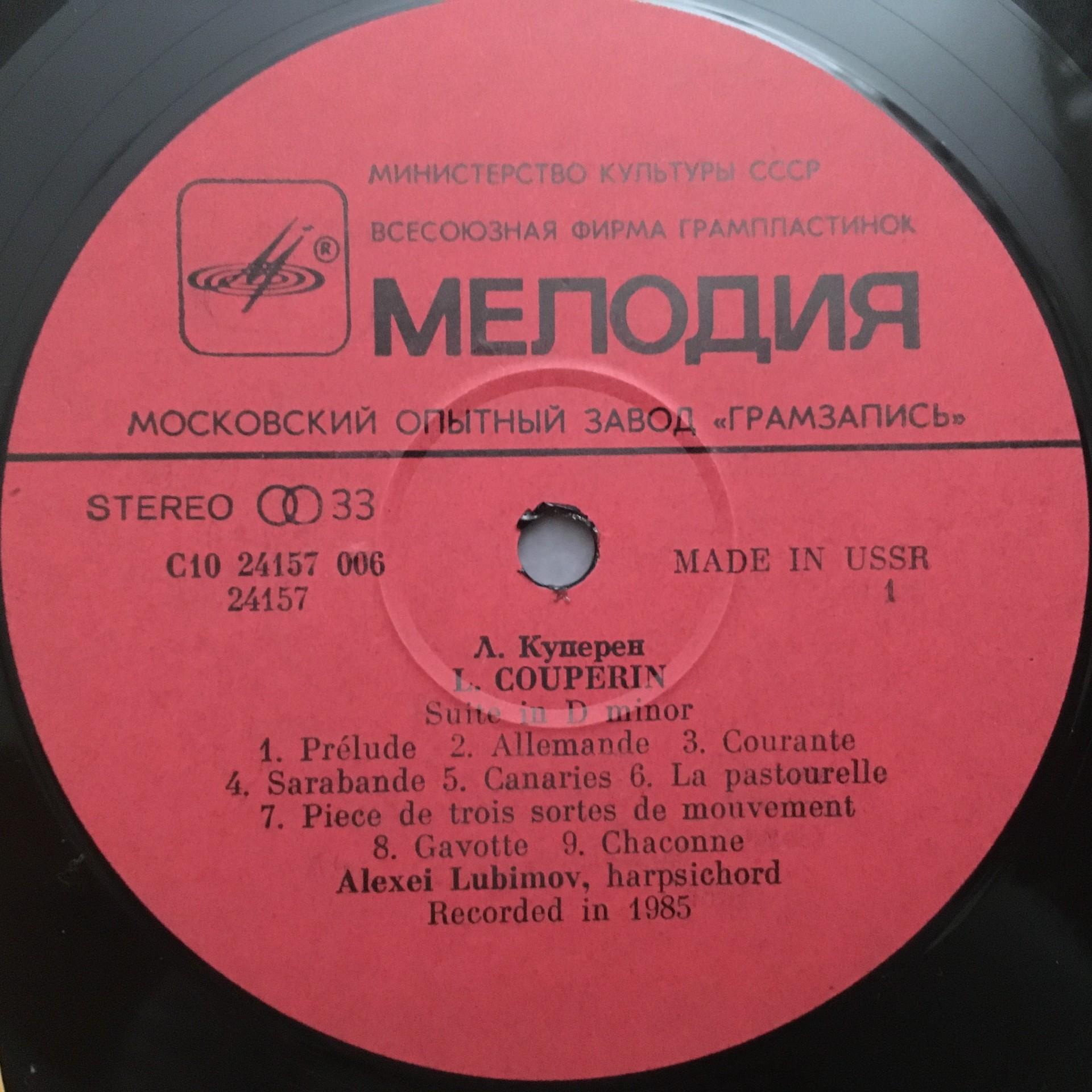 Q384 Couperin D´Anglebert Suites Lubimov Harpsichord Melodiya C10 24157 006 Ster