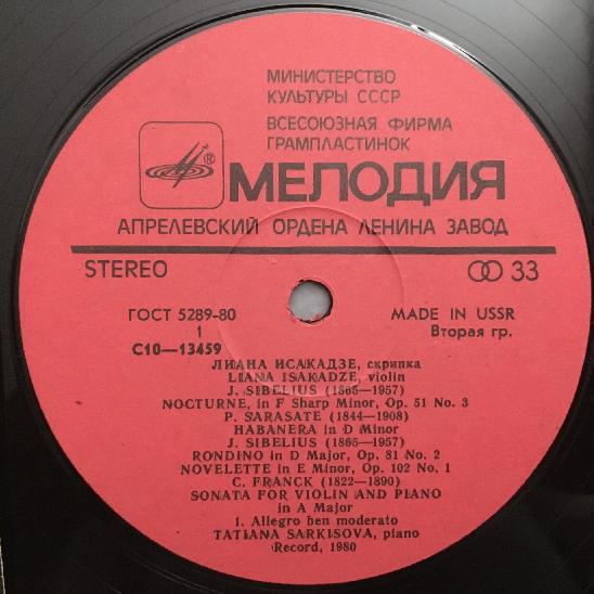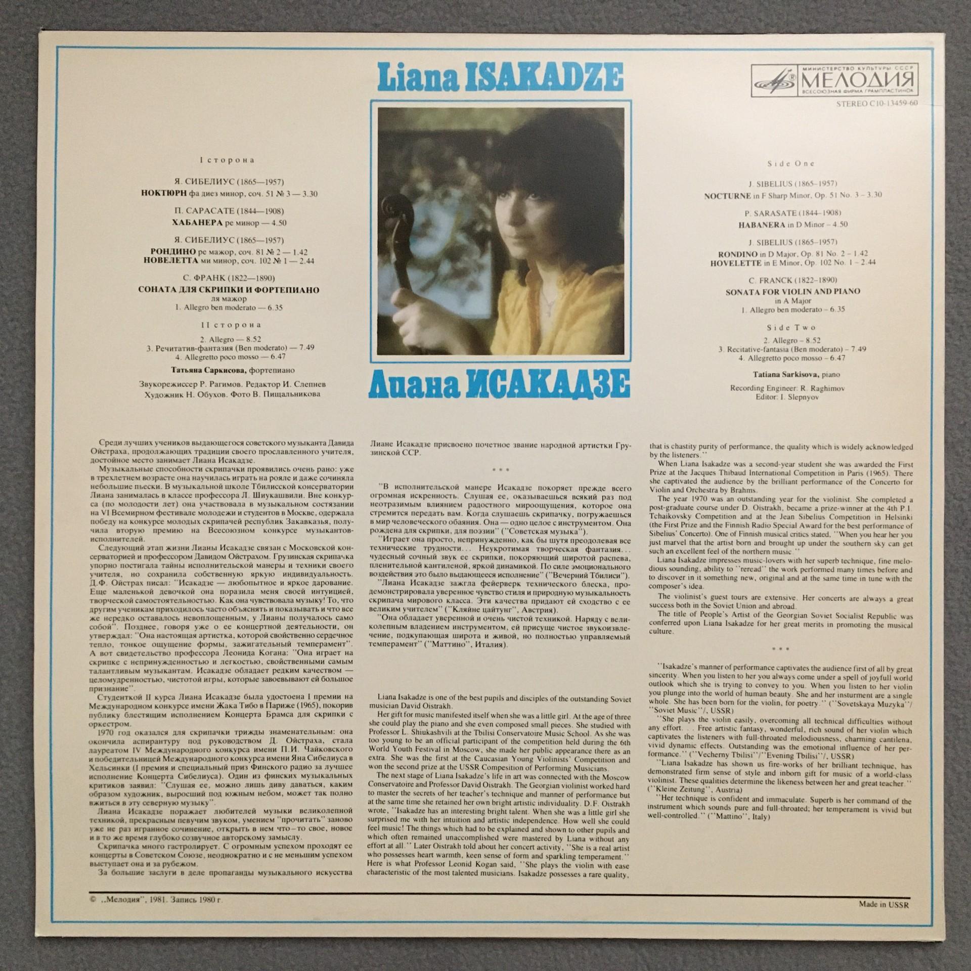 Q385 Sibelius Nocturne Franck Sonata Sarkisova Piano Melodiya C10-13459-60 Ster