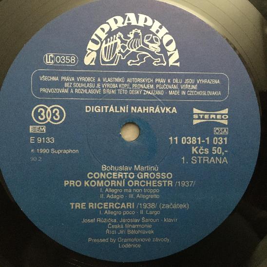 Q390 Martinu Concerto Grosso Belohlavek Supraphon 11 0381-1 ZA Digital Stereo