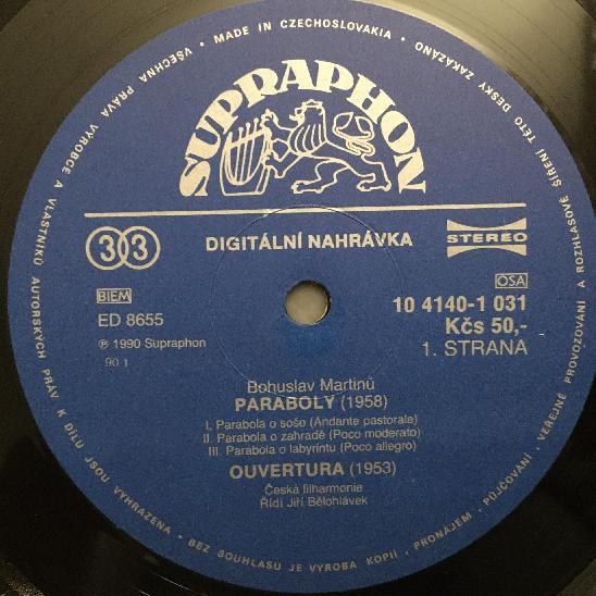 Q394 Martinu Parables Estampes Belohlavek Supraphon 10 4140-1 ZA Digital Stereo