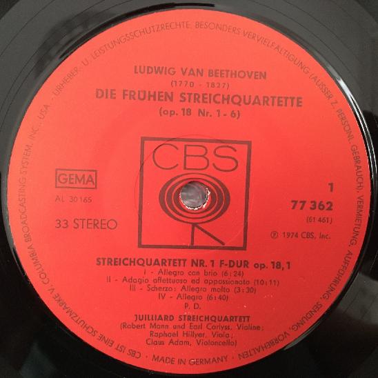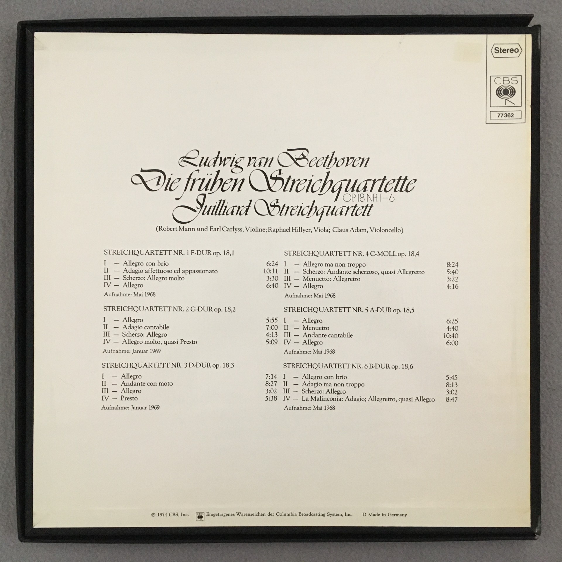 B957 Beethoven The Early String Quartets Juilliard Quartet 3LP CBS 77 362 Stereo