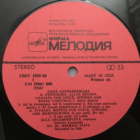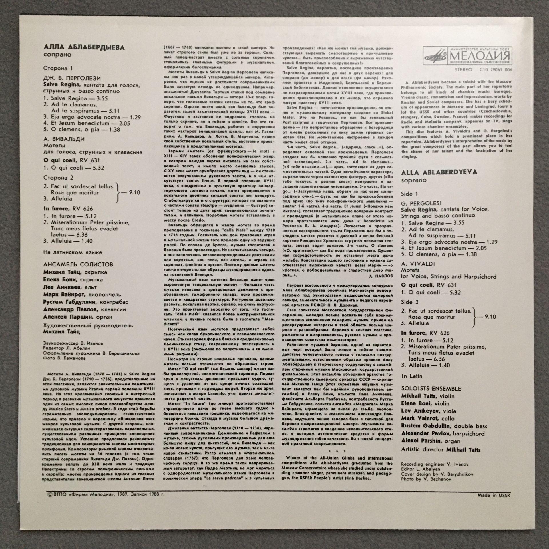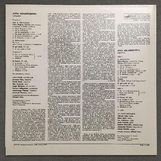 Q416 Ablaberdyeva Pergolesi Salve Regina Vivaldi Melodiya C10 29061 006 Stereo