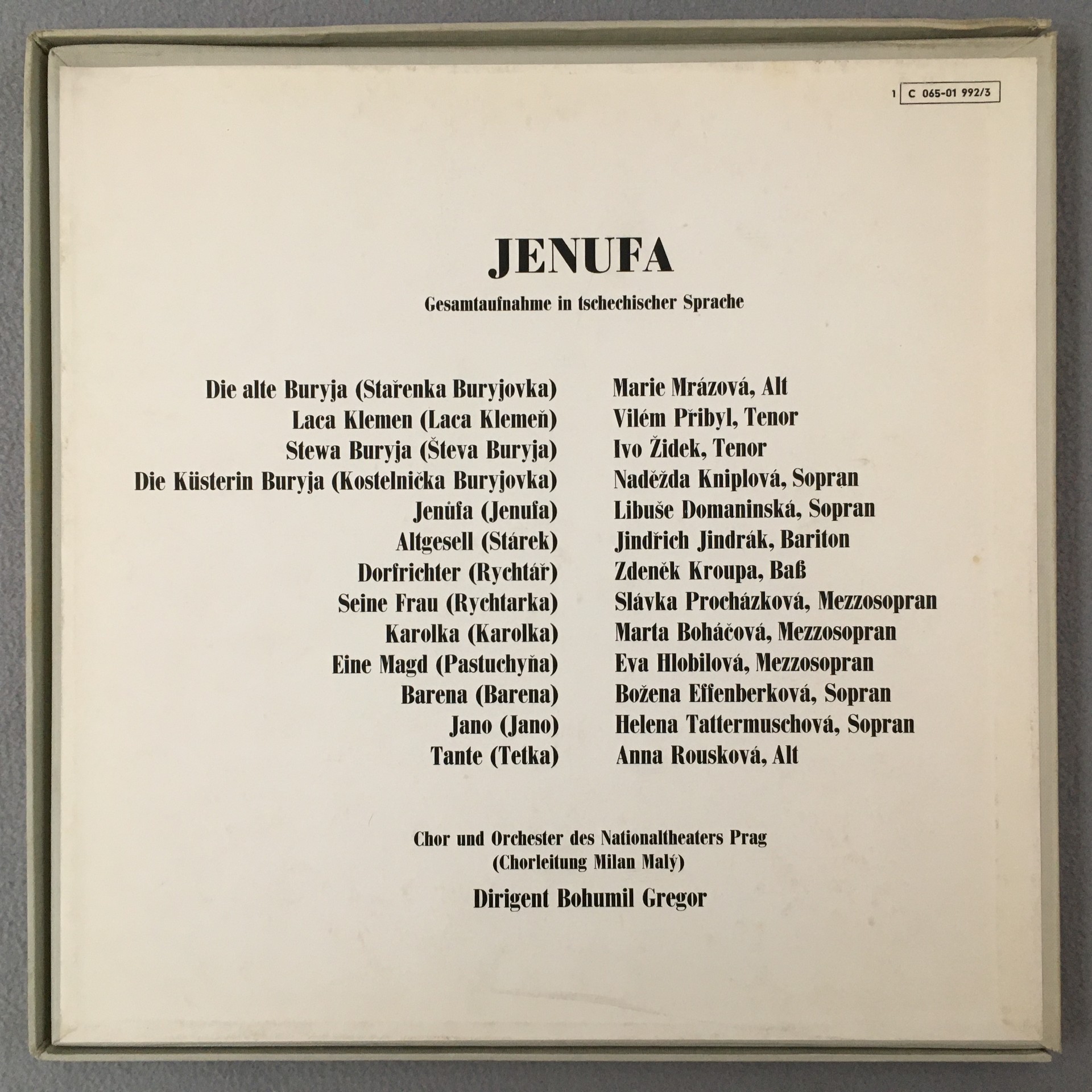 B959 Janacek Jenufa Pribyl Gregor 2LP EMI Angel 1 C 065-01 992/3 Stereo