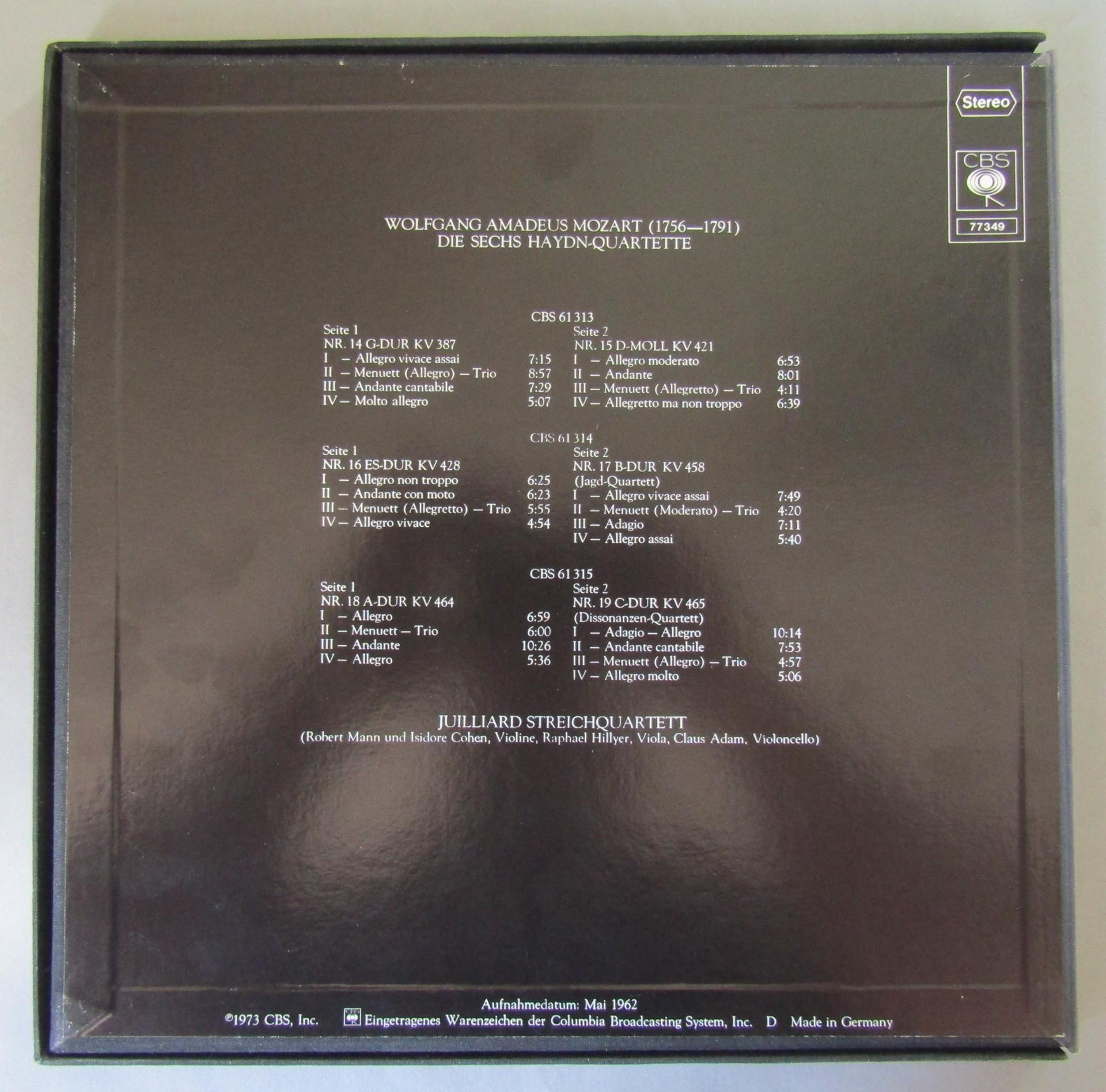 G787 Mozart 6 String Quartets Juilliard String Quartet 3LP CBS 77 349 Stereo
