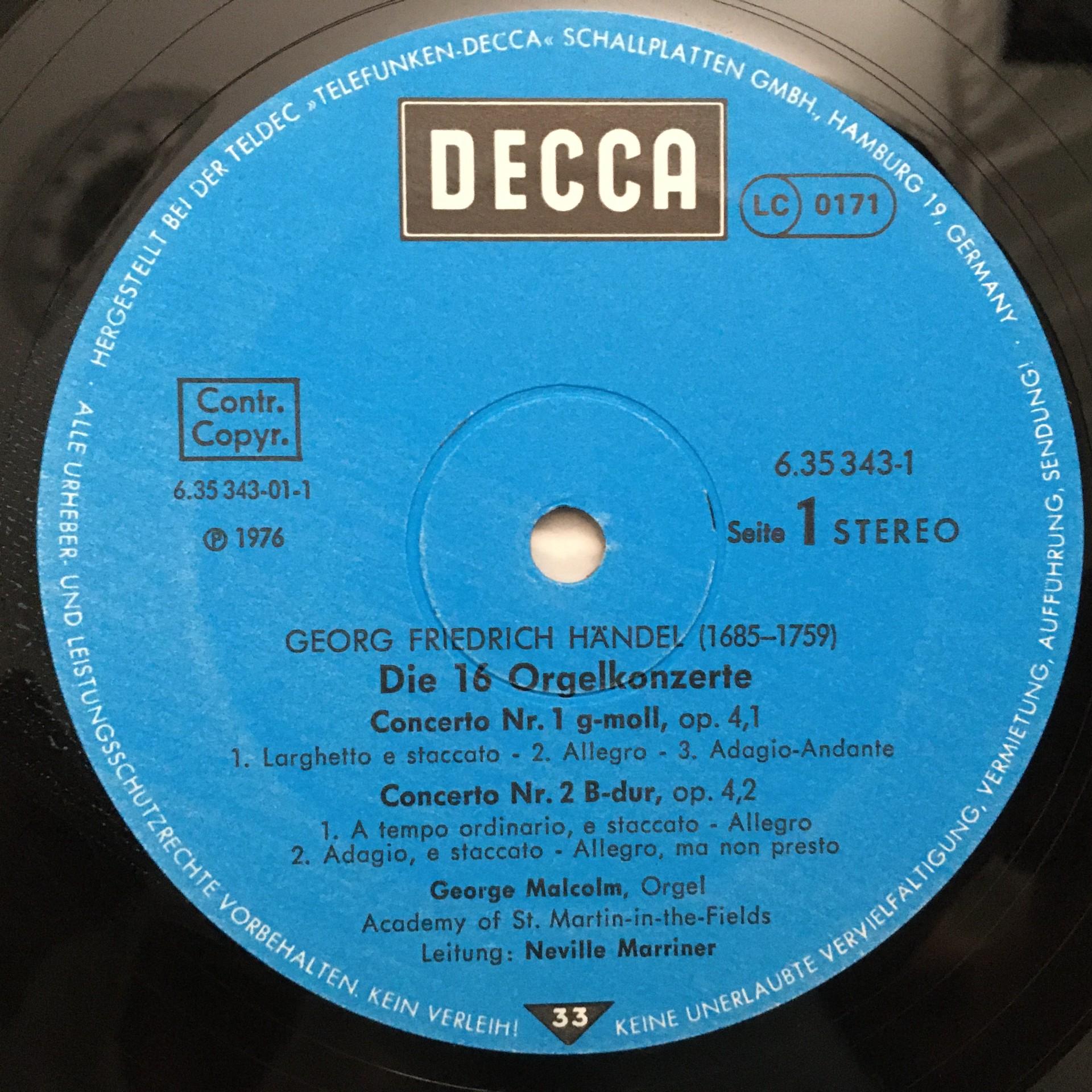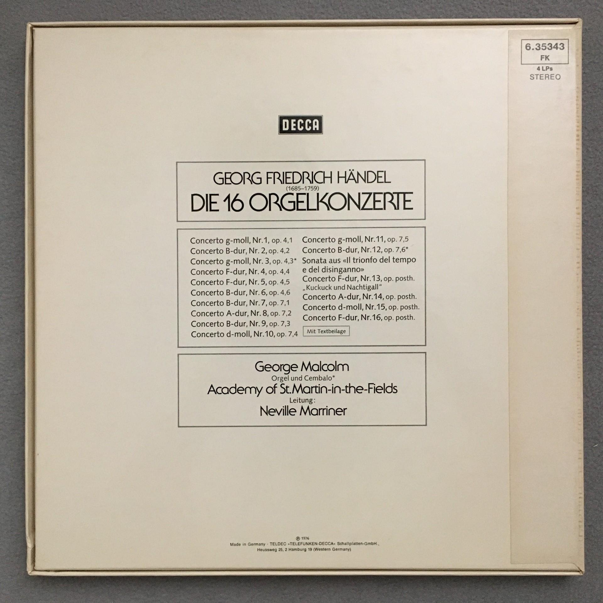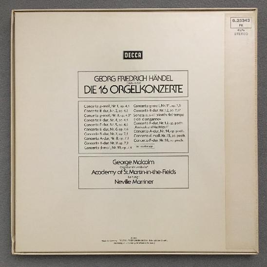 D978 Handel 16 Organ Concertos Malcolm Marriner 4LP DECCA 6.35343 FK Stereo