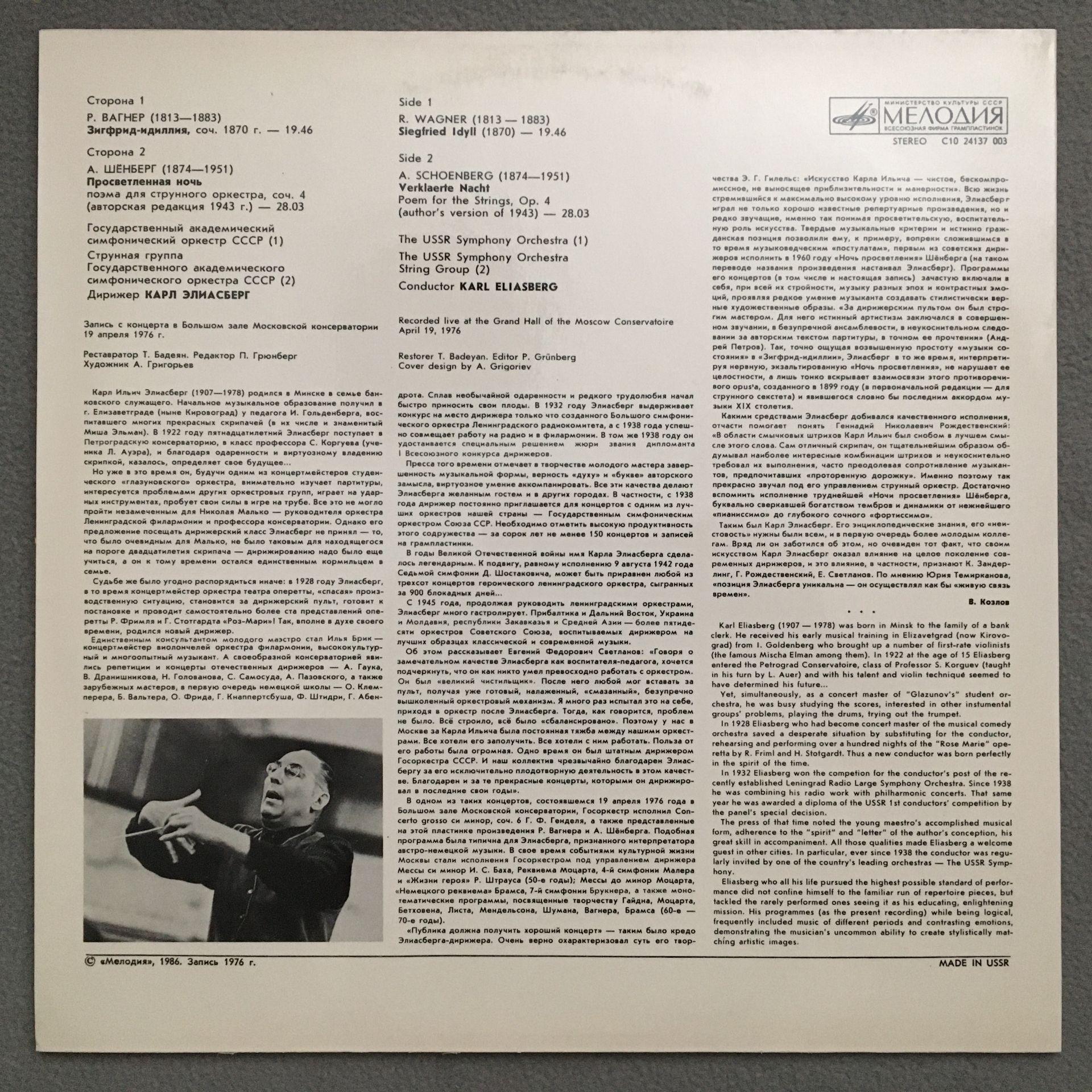 Q418 Wagner Siegfried Idyll Schoenberg Eliasberg Melodiya C10 24137 003 Stereo