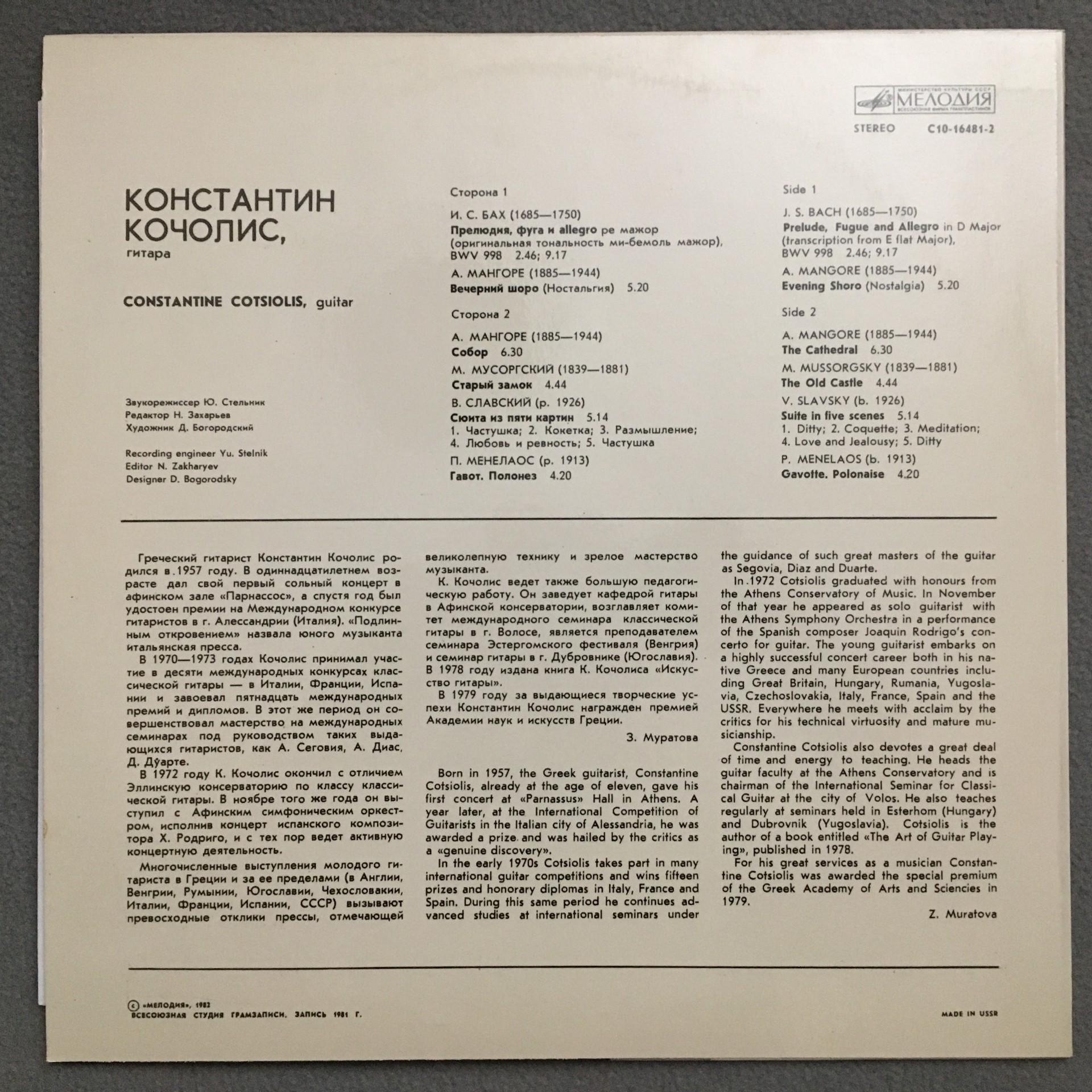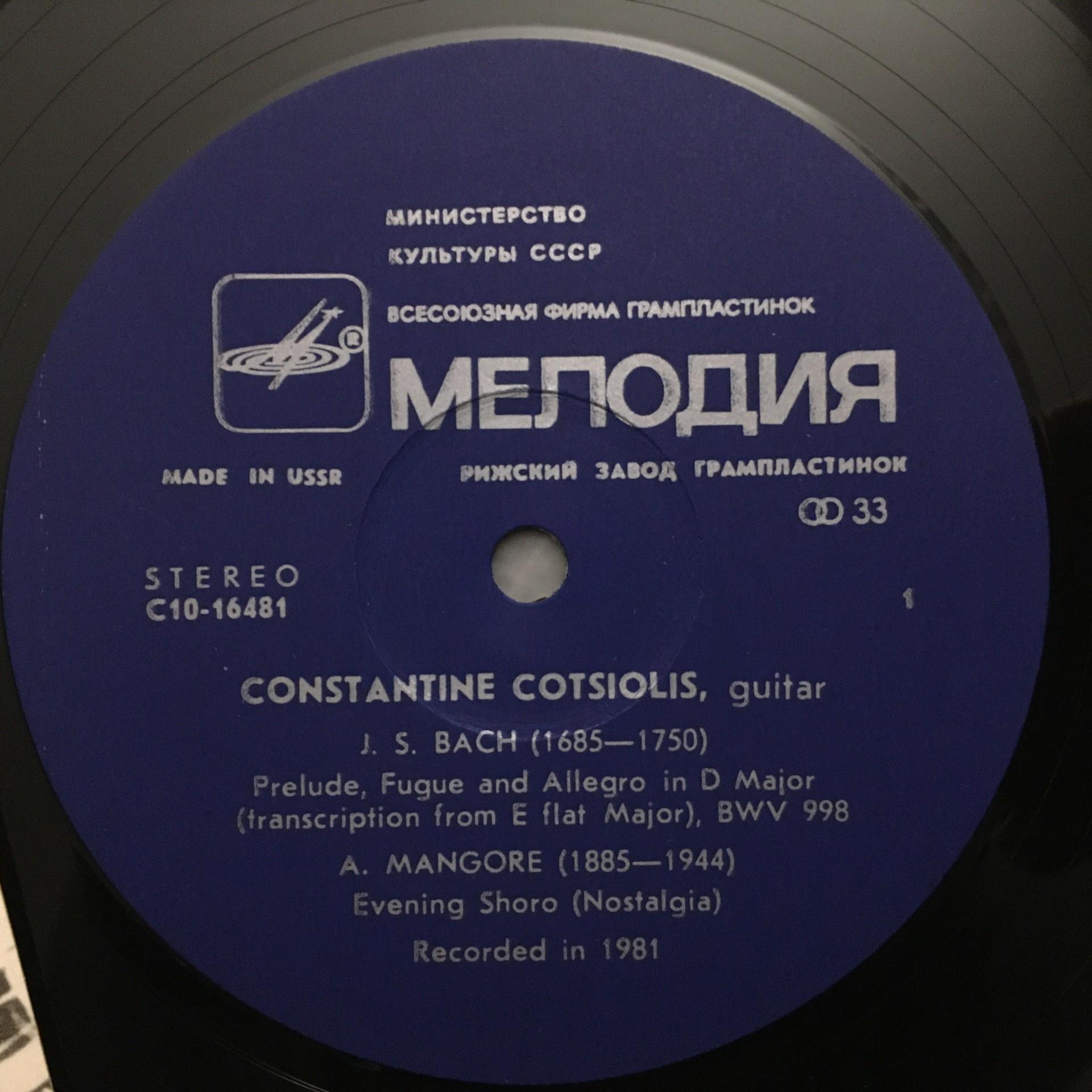 Q421 Bach Prelude Fugue Mangore Cotsiolis Guitar Melodiya C10-16481-2 Stereo