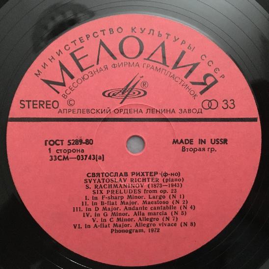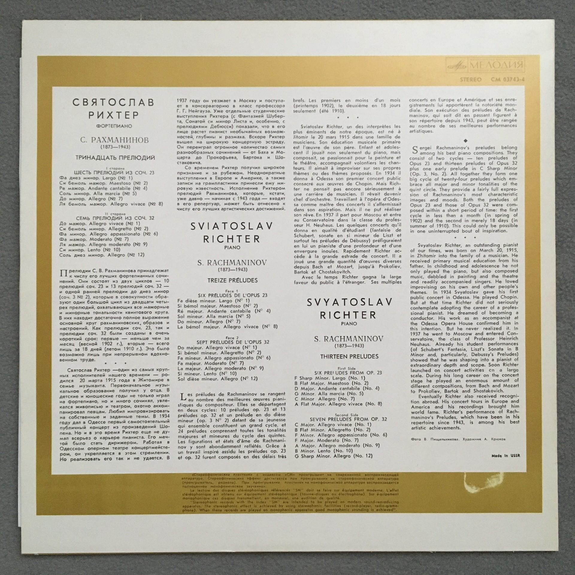 Q423 Rachmaninov 13 Preludes Richter Piano Melodiya CM 03743-4 Stereo