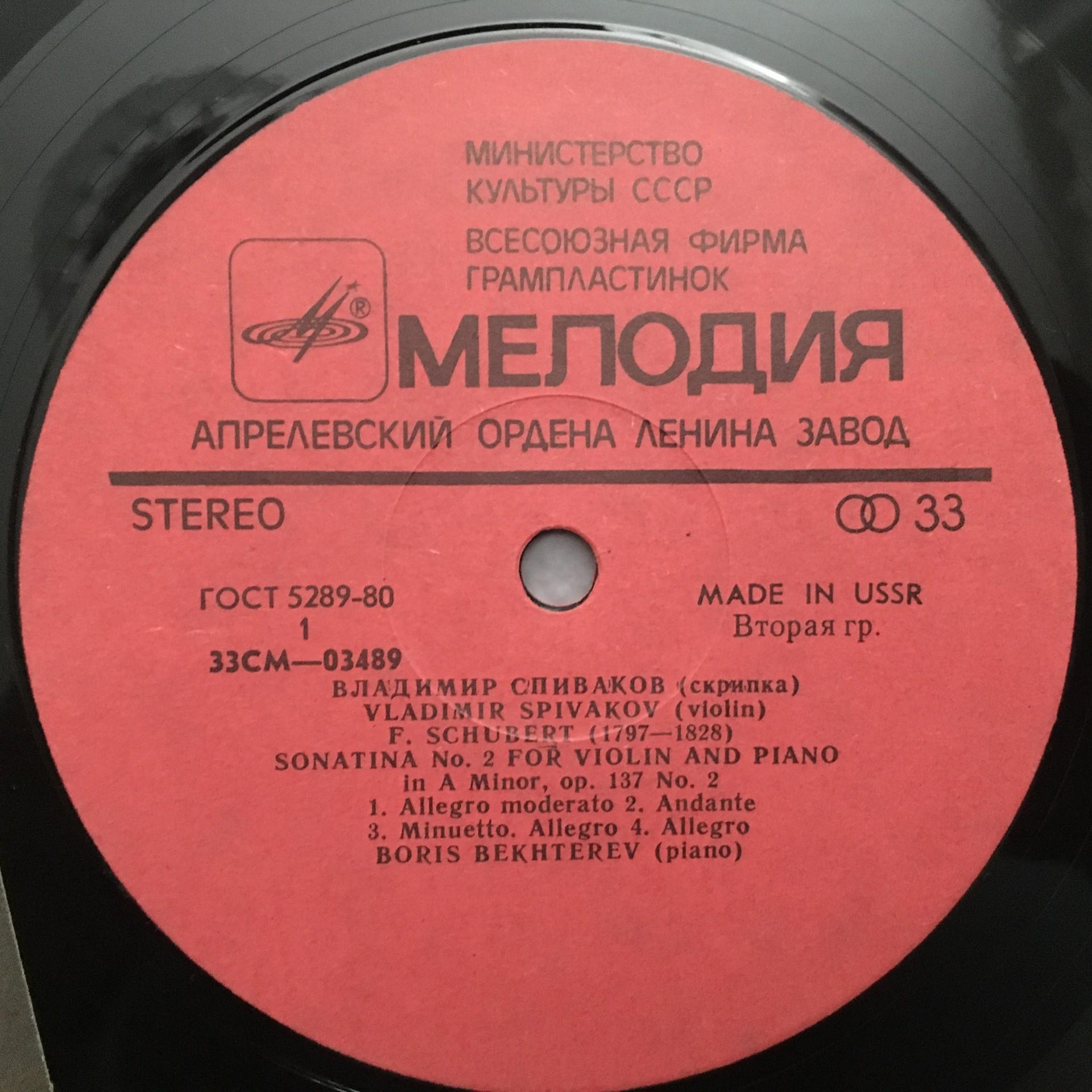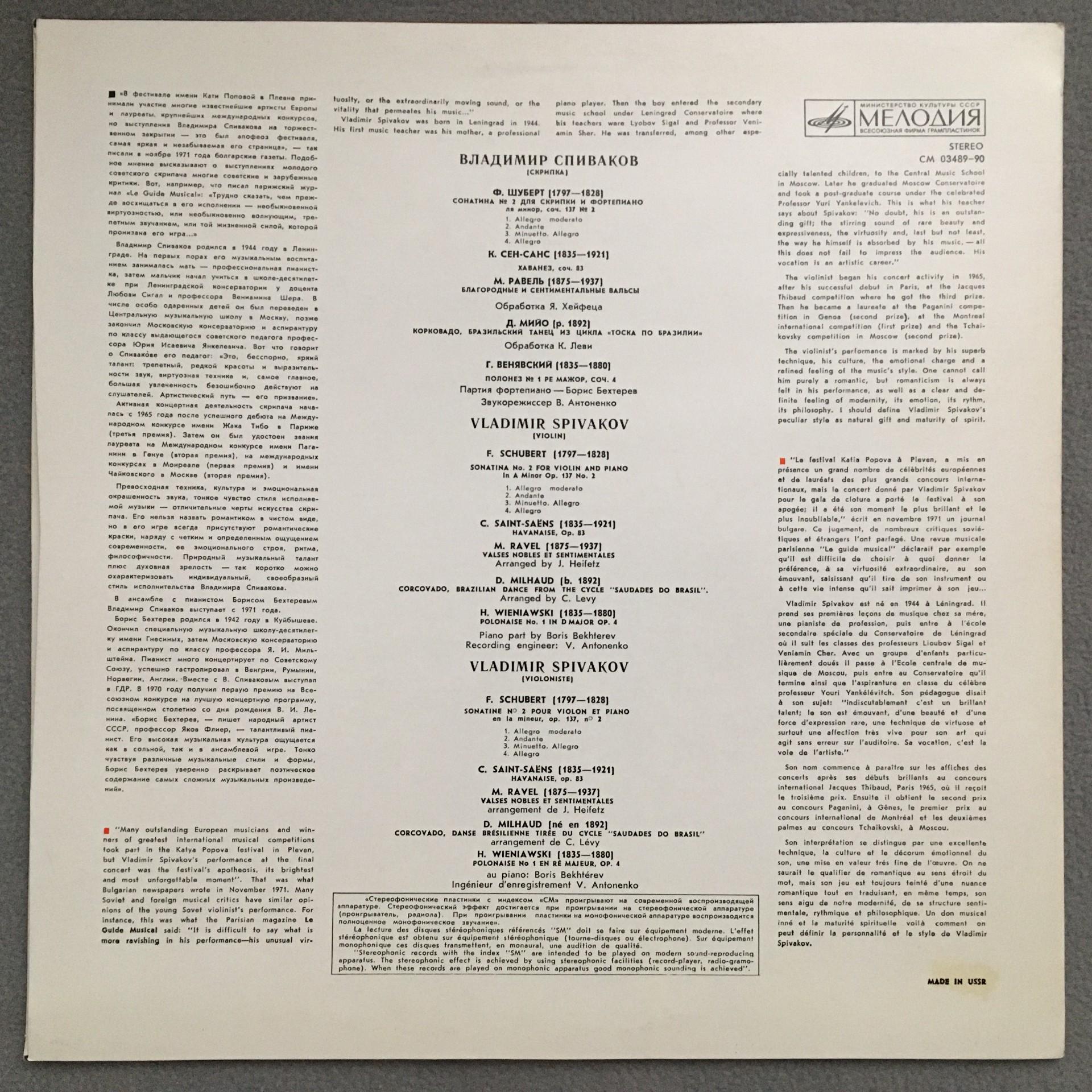 Q433 Schubert Sonata Ravel Valses Spivakov Melodiya CM 03489-90 Stereo