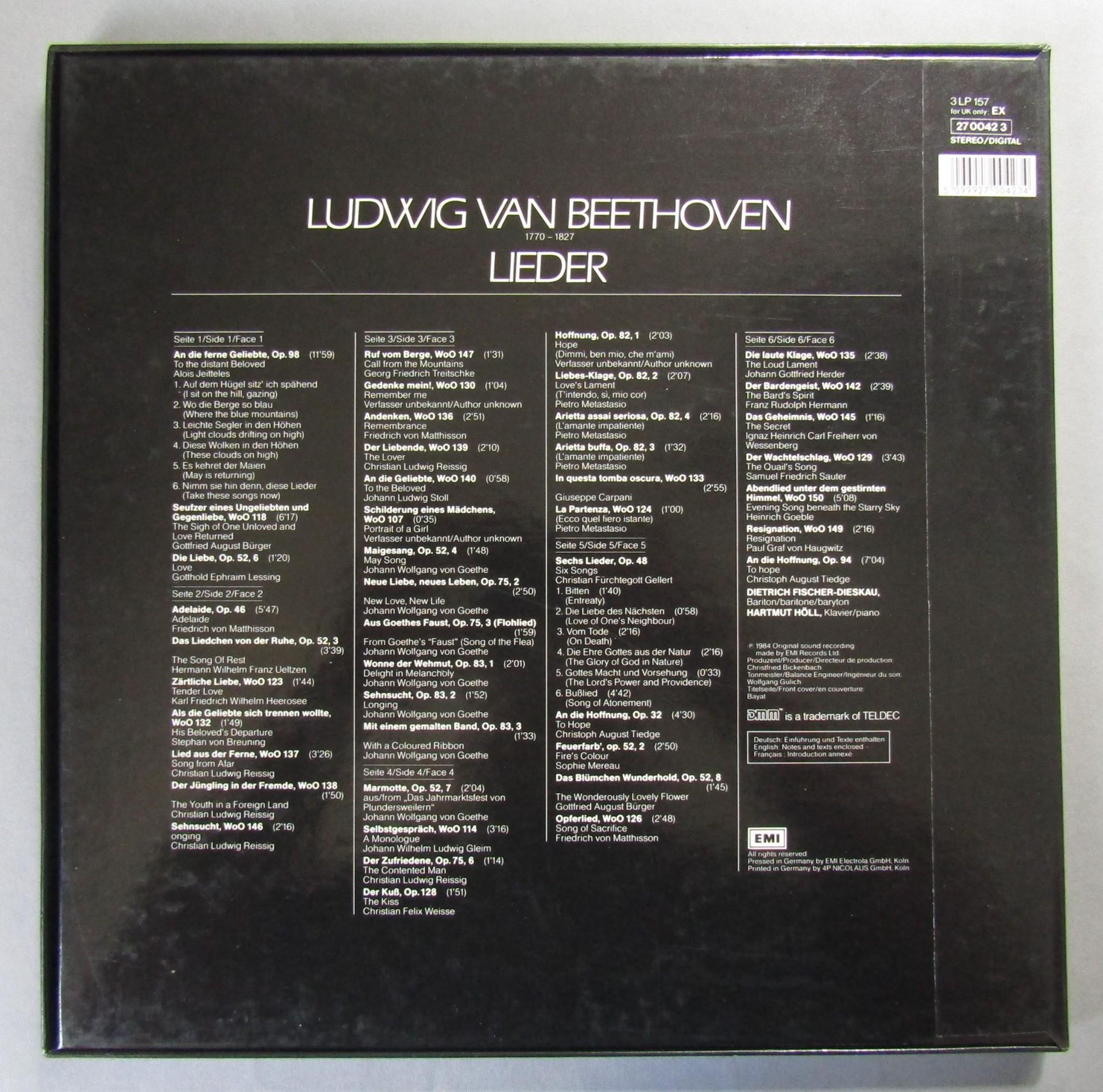 G375 Beethoven Songs Fischer-Dieskau Höll 3LP EMI 157 270042 3 Digital Stereo