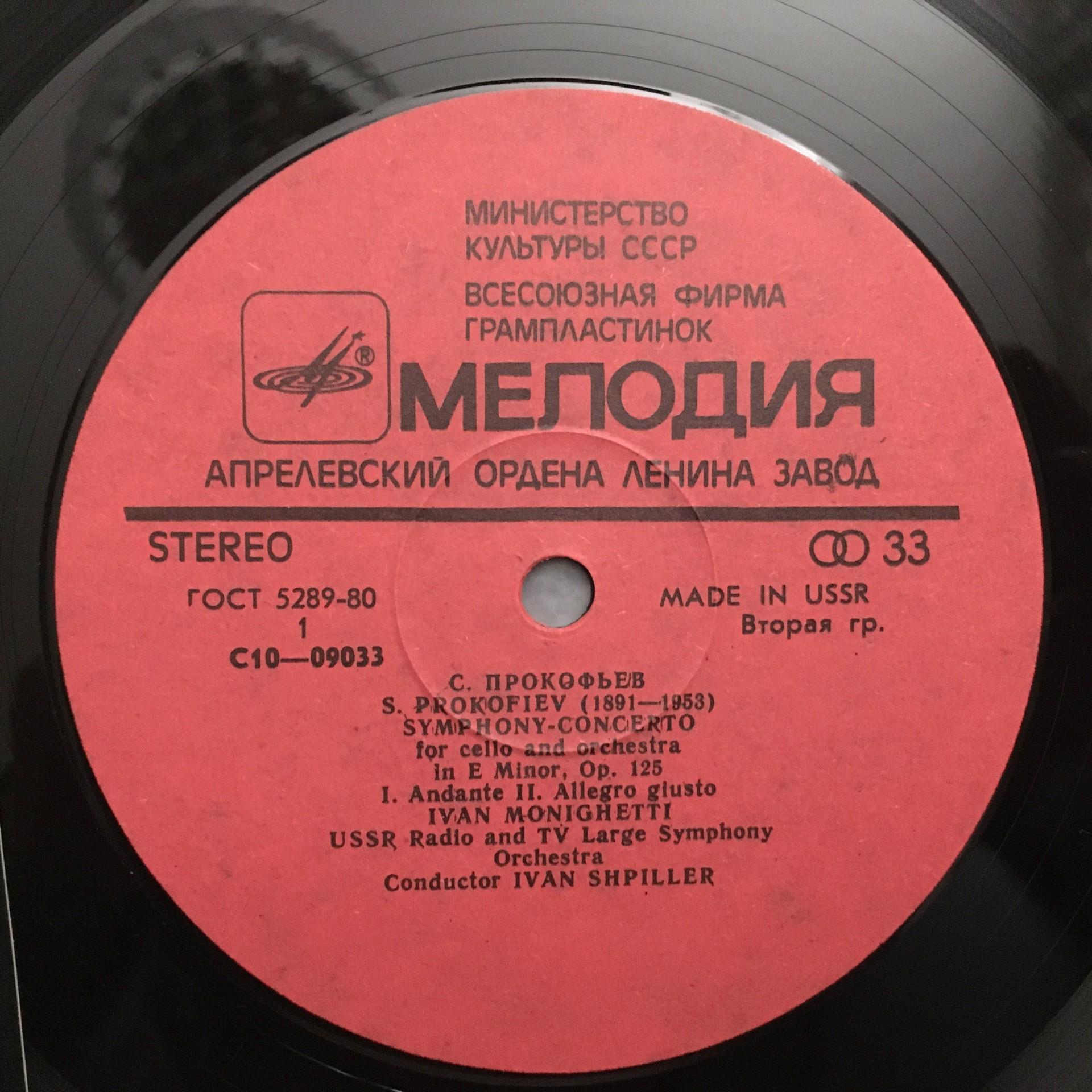 Q439 Prokofiev Symphony-Concerto Cello Monighetti Shpiller Melodiya C10-09033-4
