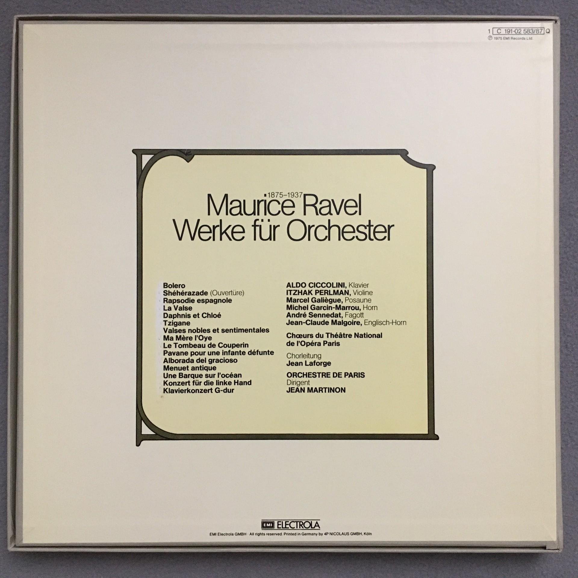 D991 Ravel Orchestral Works Perlman Martinon 5LP EMI 1C 191-02 583/87 Q Quadro