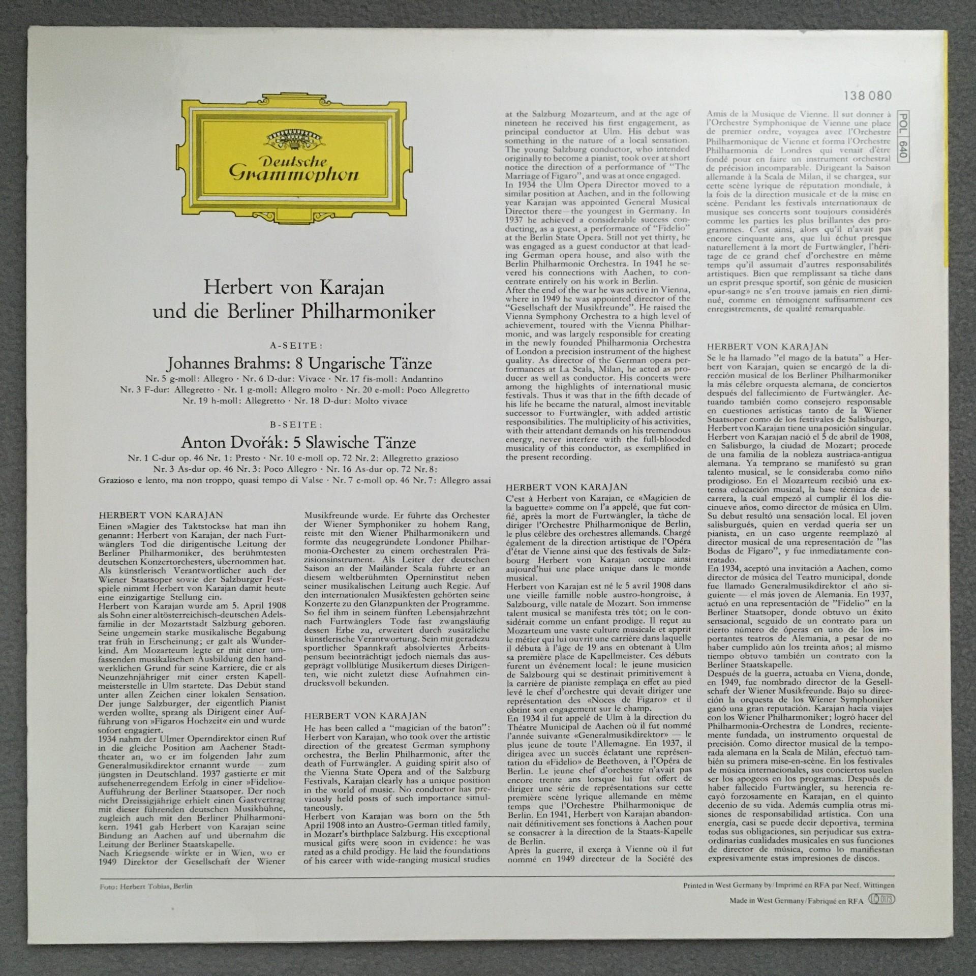 Q451 Brahms Dvorak Hungarian & Slavonic Dances Karajan DGG 138 080 Stereo