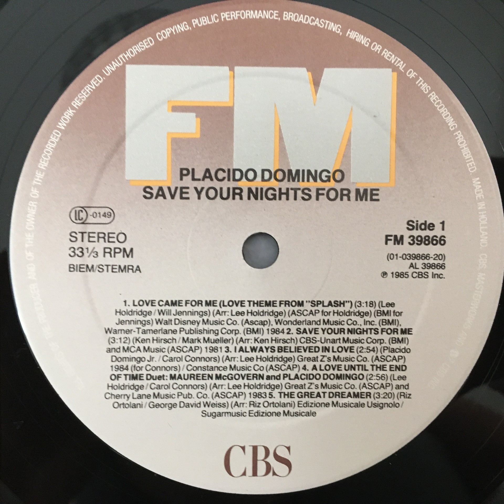 R206 Domingo Duets with Maureen Mc Govern CBS FM 39866 Stereo