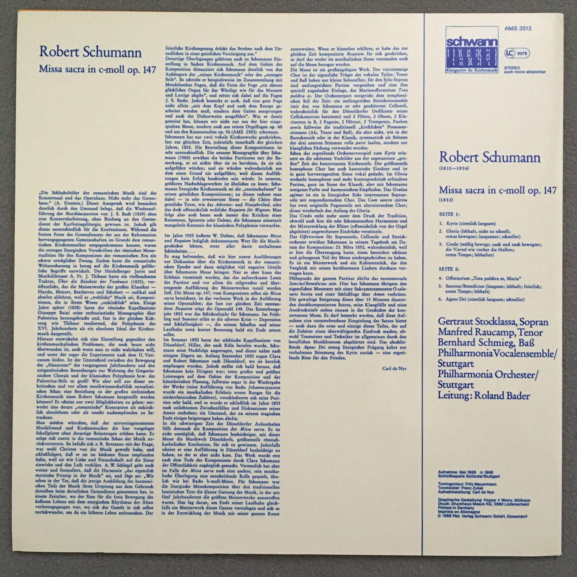 Q465 Schumann Missa Sacra Stocklassa Brachmann Bader Schwann AMS 3513 Stereo
