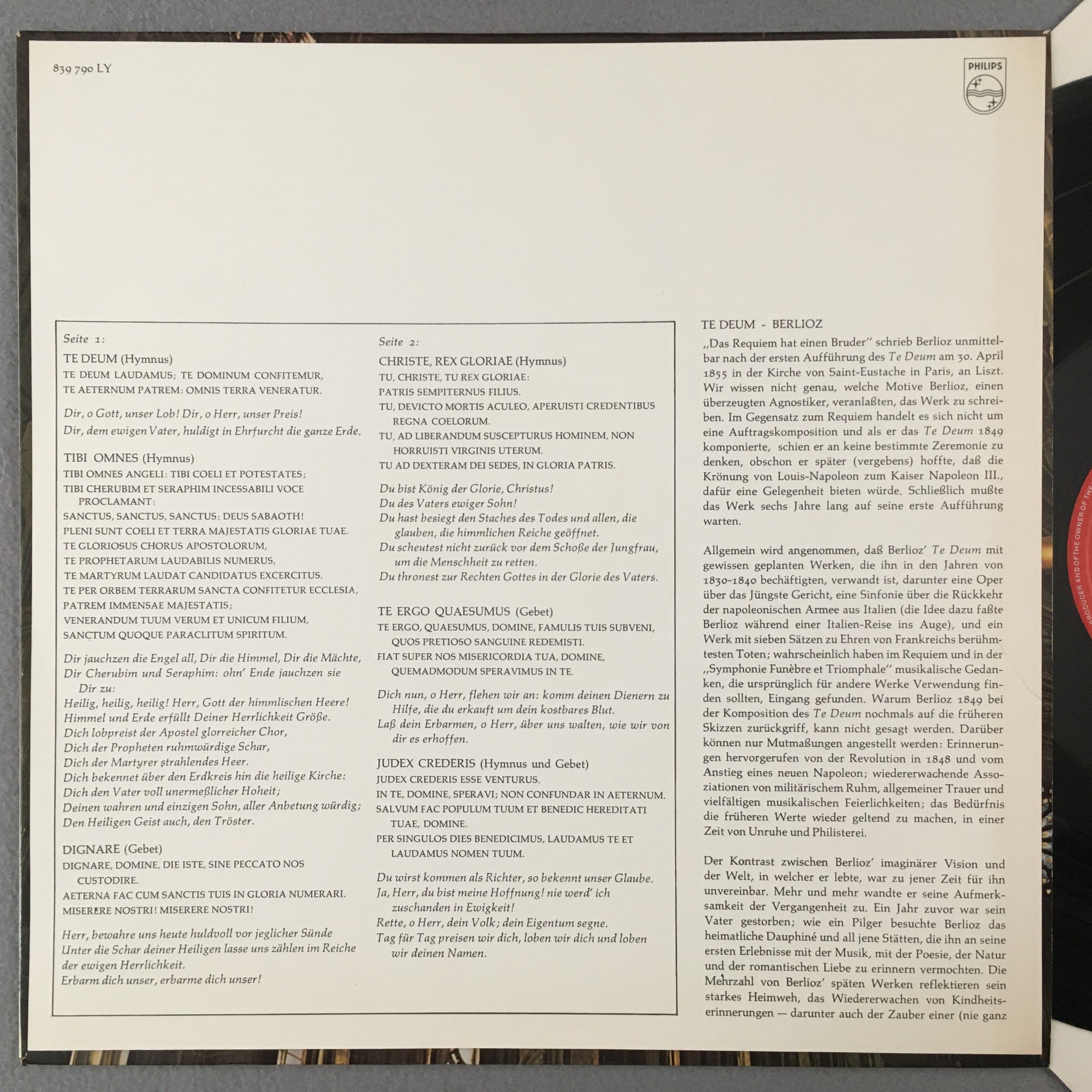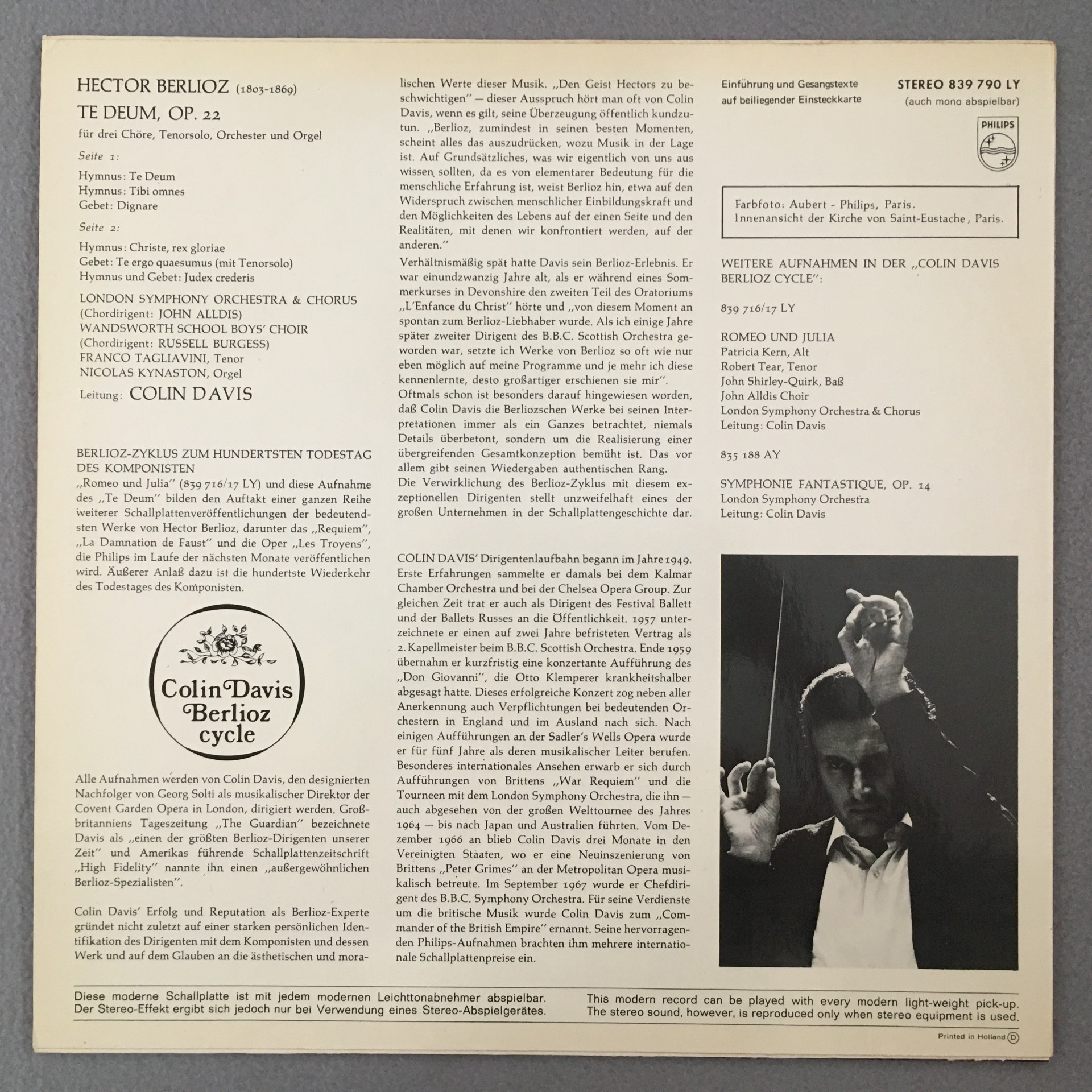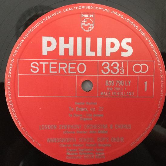 R210 Berlioz Te Deum Tagliavini Davis Philips 839 790 LY Stereo