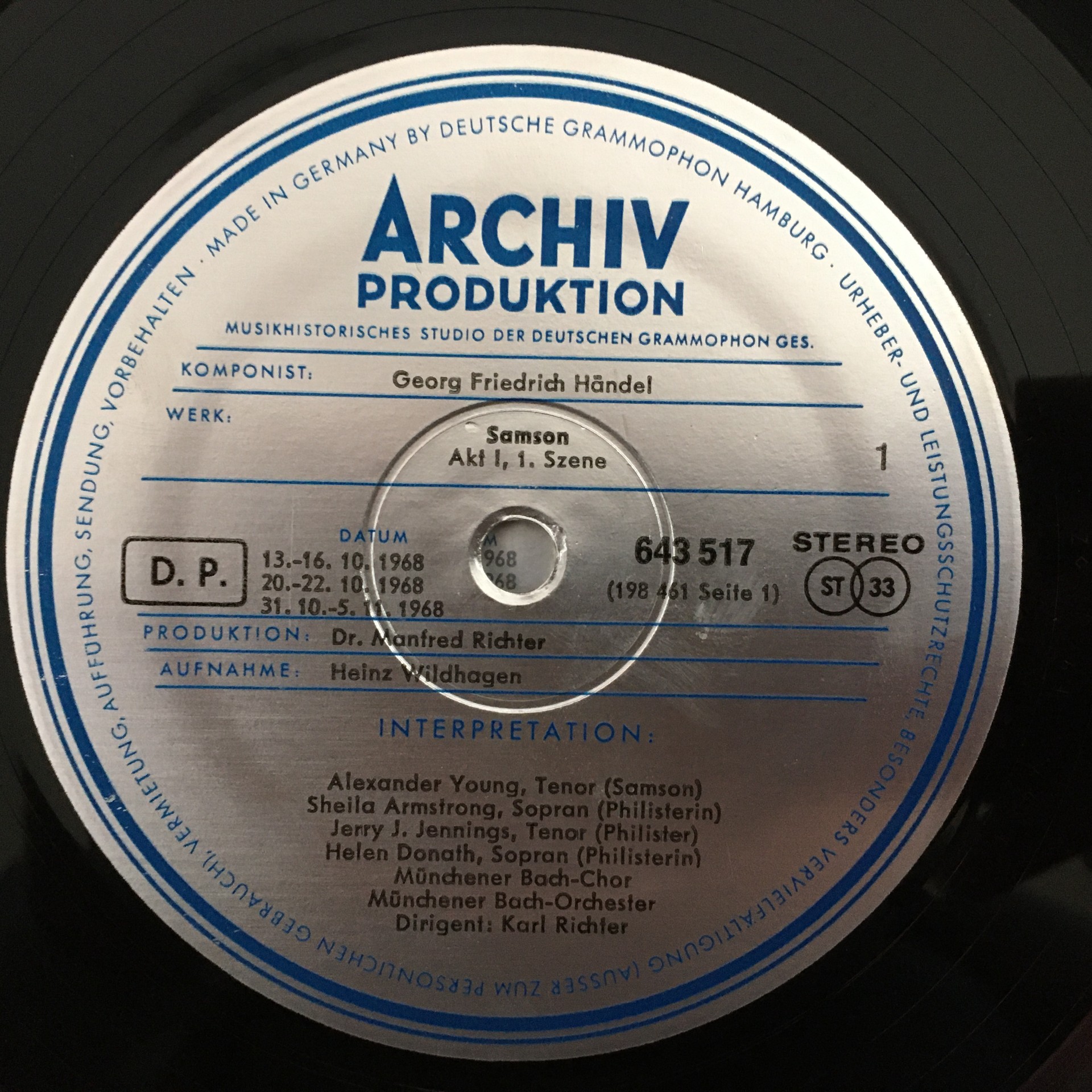 G077 Handel Samson Arroyo Donath Richter 4LP DGG Archiv 643 517/20 Stereo
