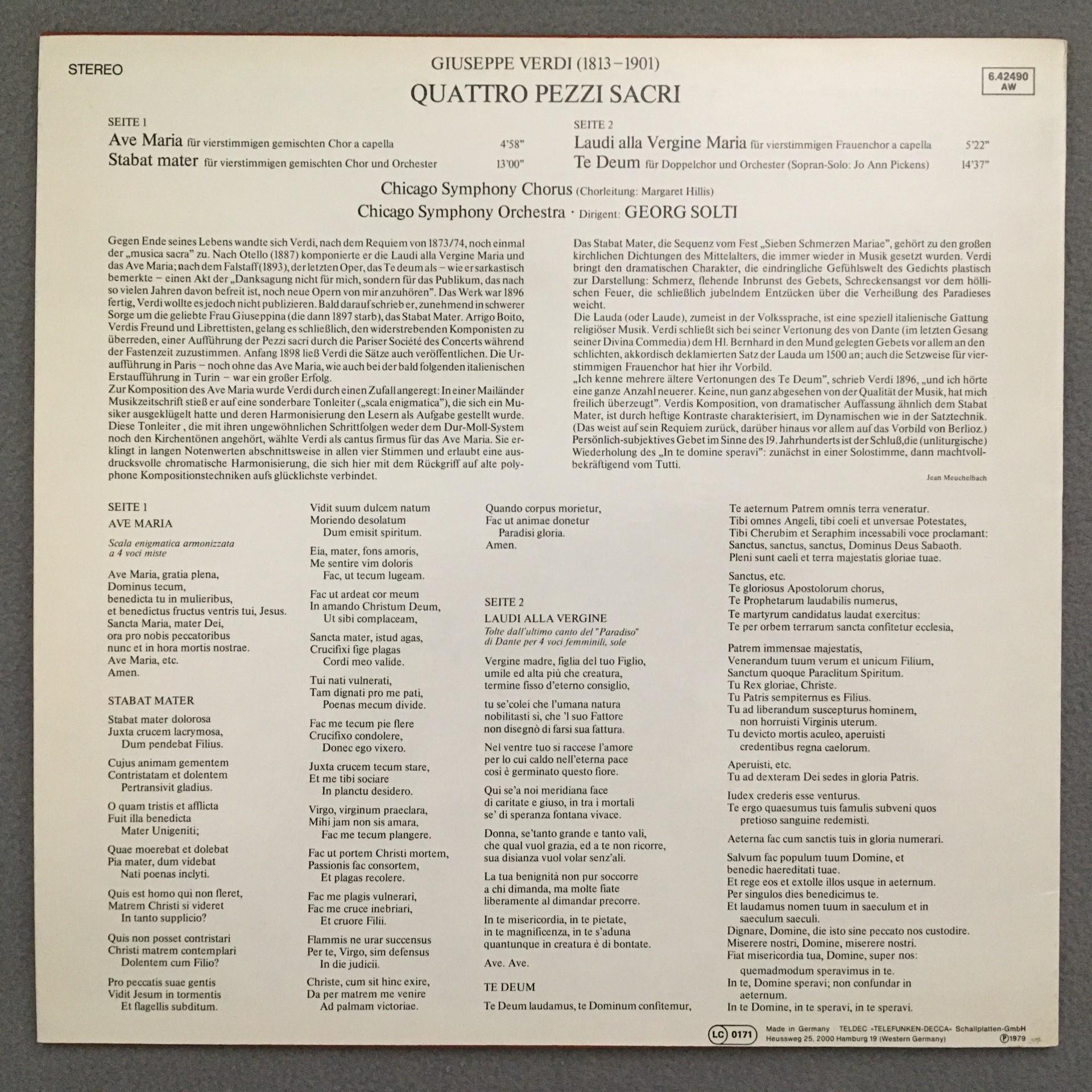 Q481 Verdi 4 Sacri Pezzi Ave Maria Te Deum Solti DECCA 6.42490 AW Stereo