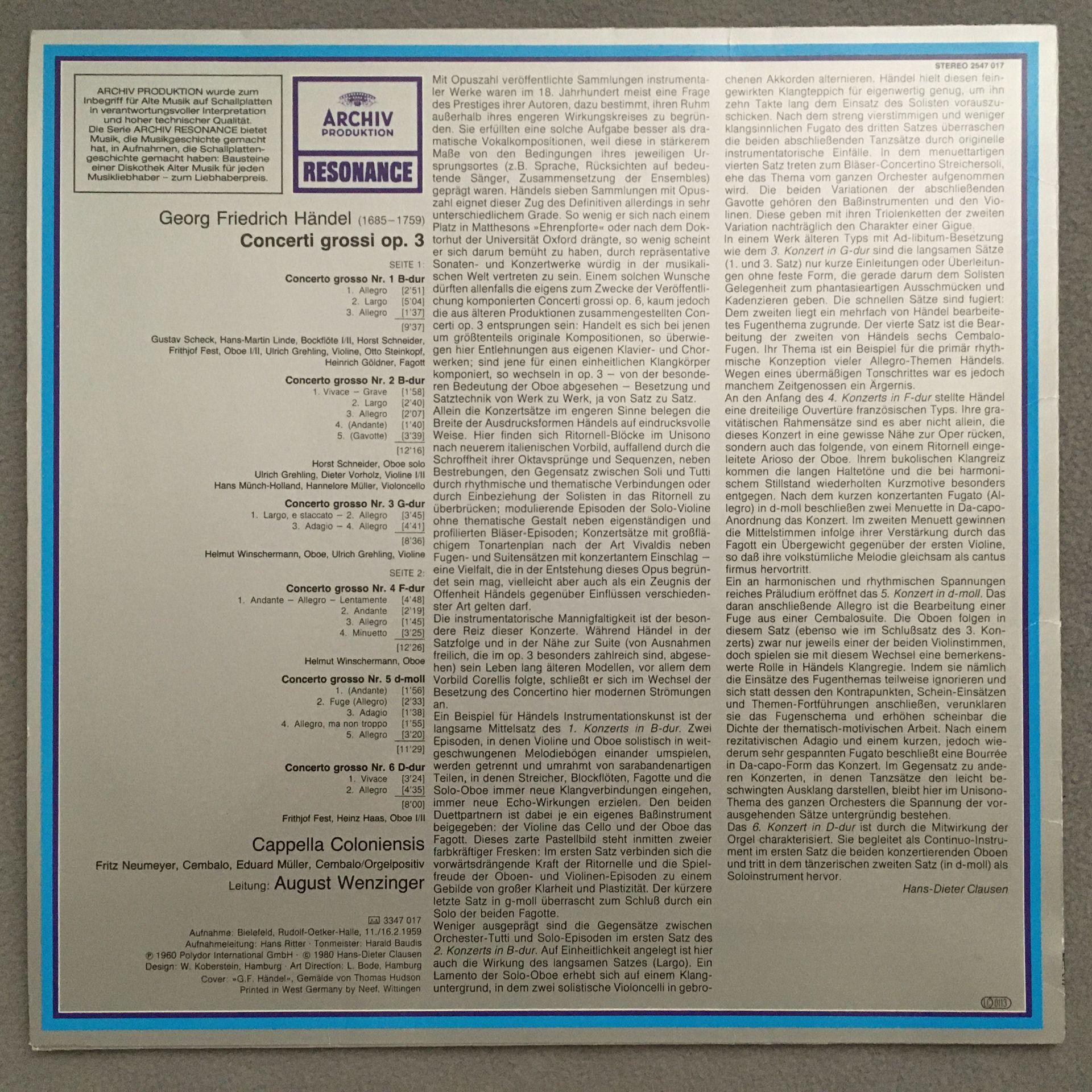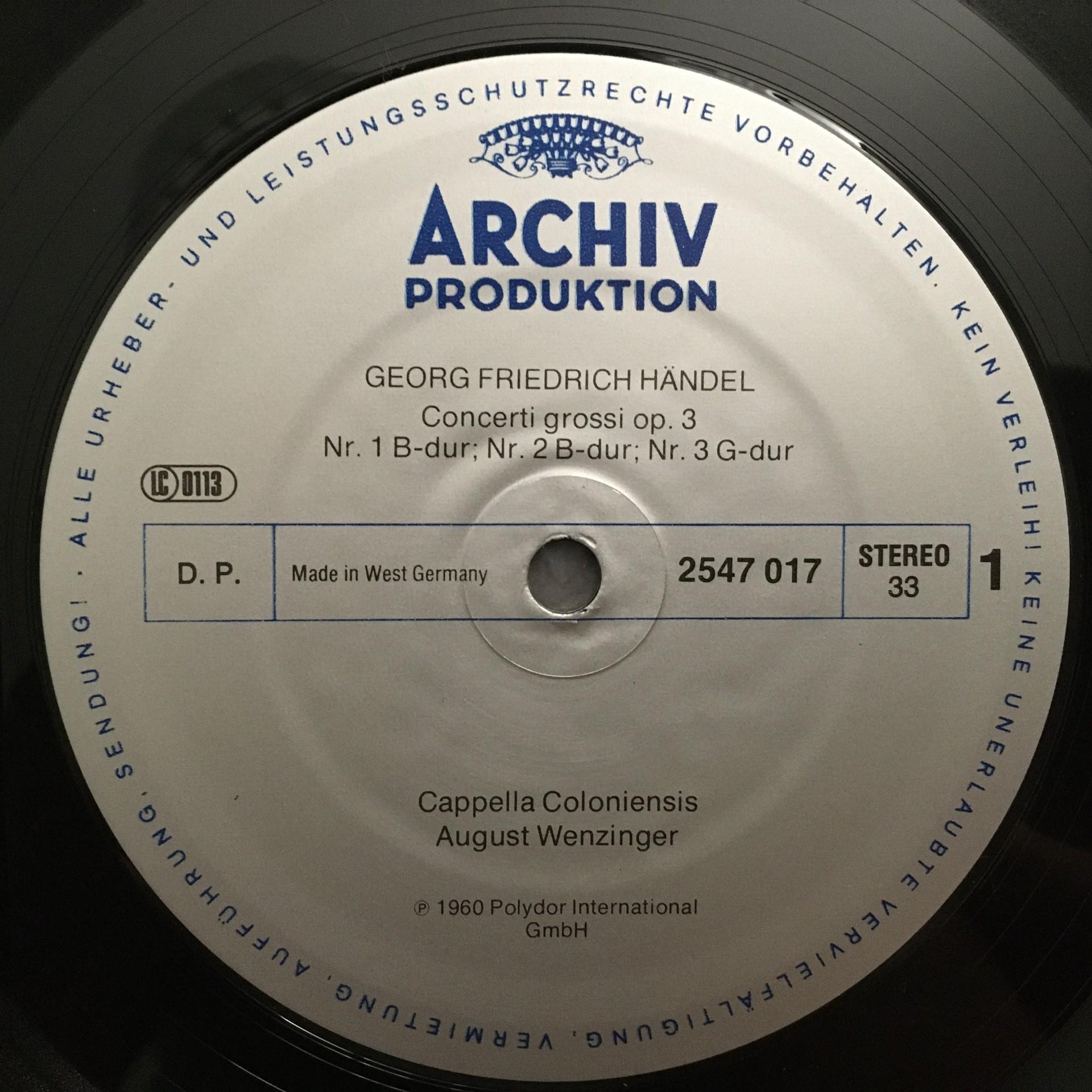 Q495 Handel Concerti Grossi Haas Müller Wenzinger DGG Archiv 2547 017 Stereo