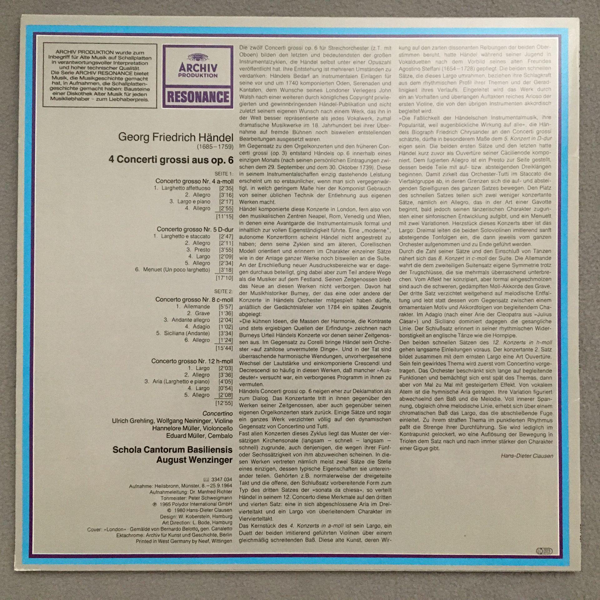 Q496 Handel 4 Concerti Grossi Müller Wenzinger DGG Archiv 2547 034 Stereo