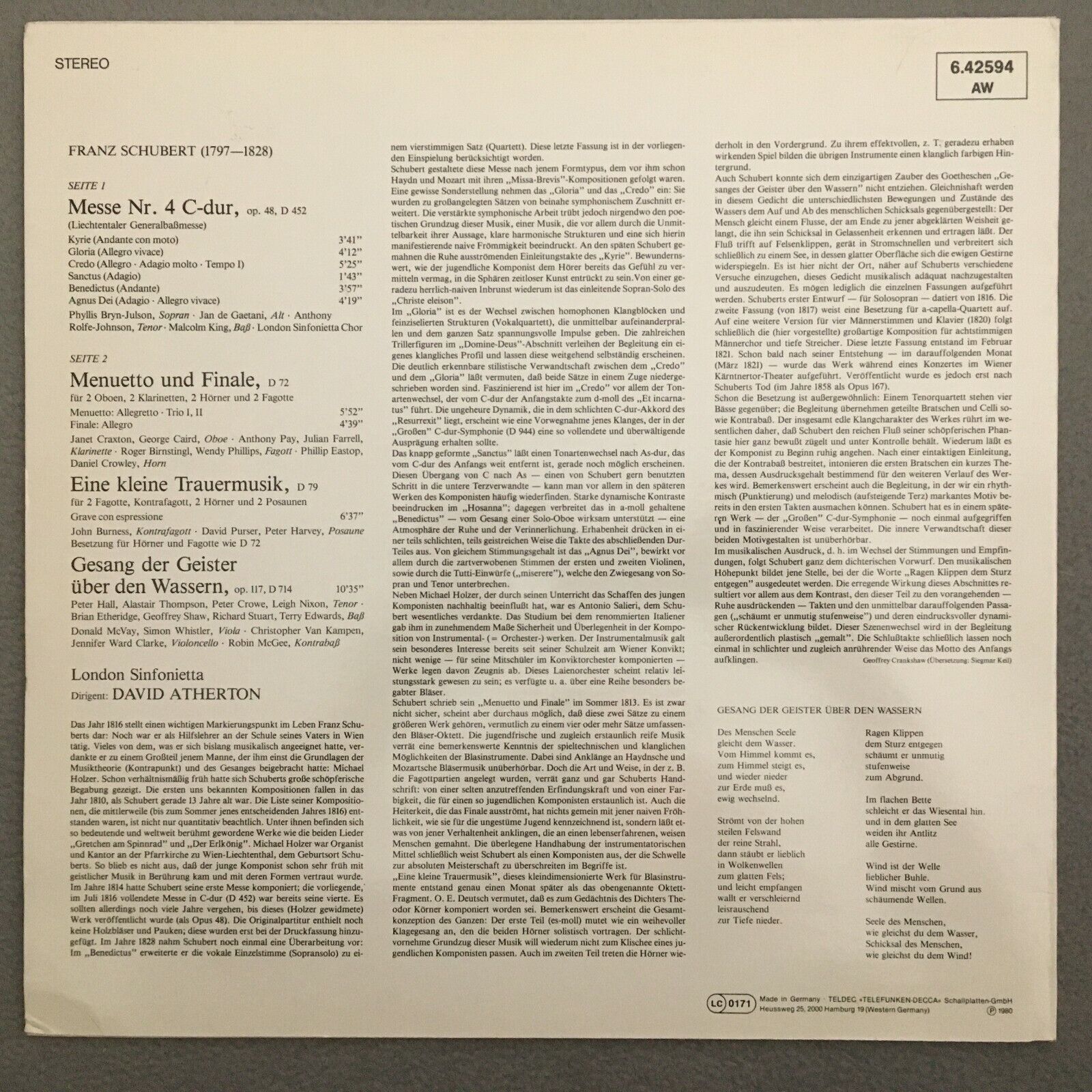 R700 Schubert Mass No.4 Bryn King Atherton DECCA 6.42594 AW Stereo