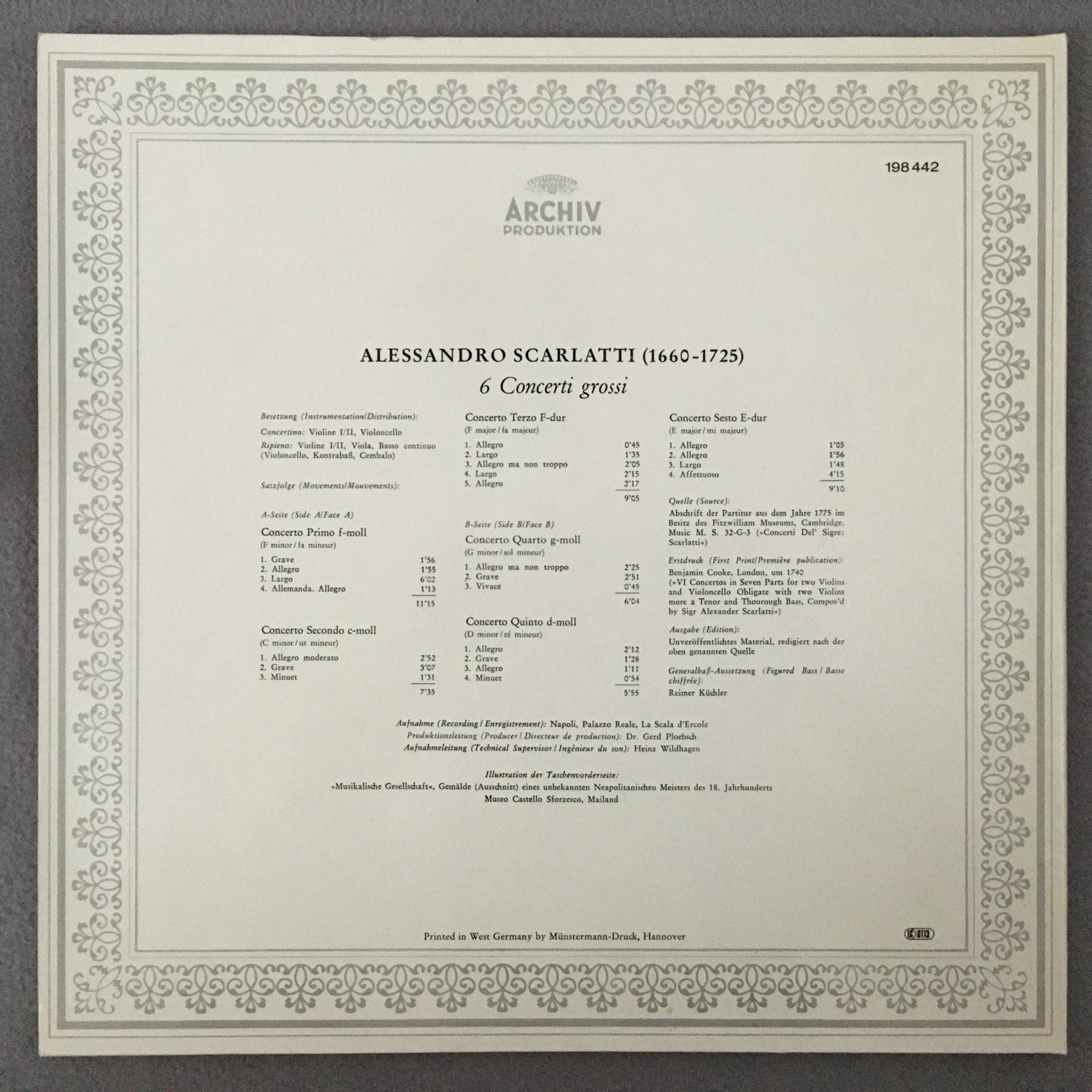 R701 Scarlatti 6 Concerti Grossi Gracis DGG Archiv 198 442 Stereo
