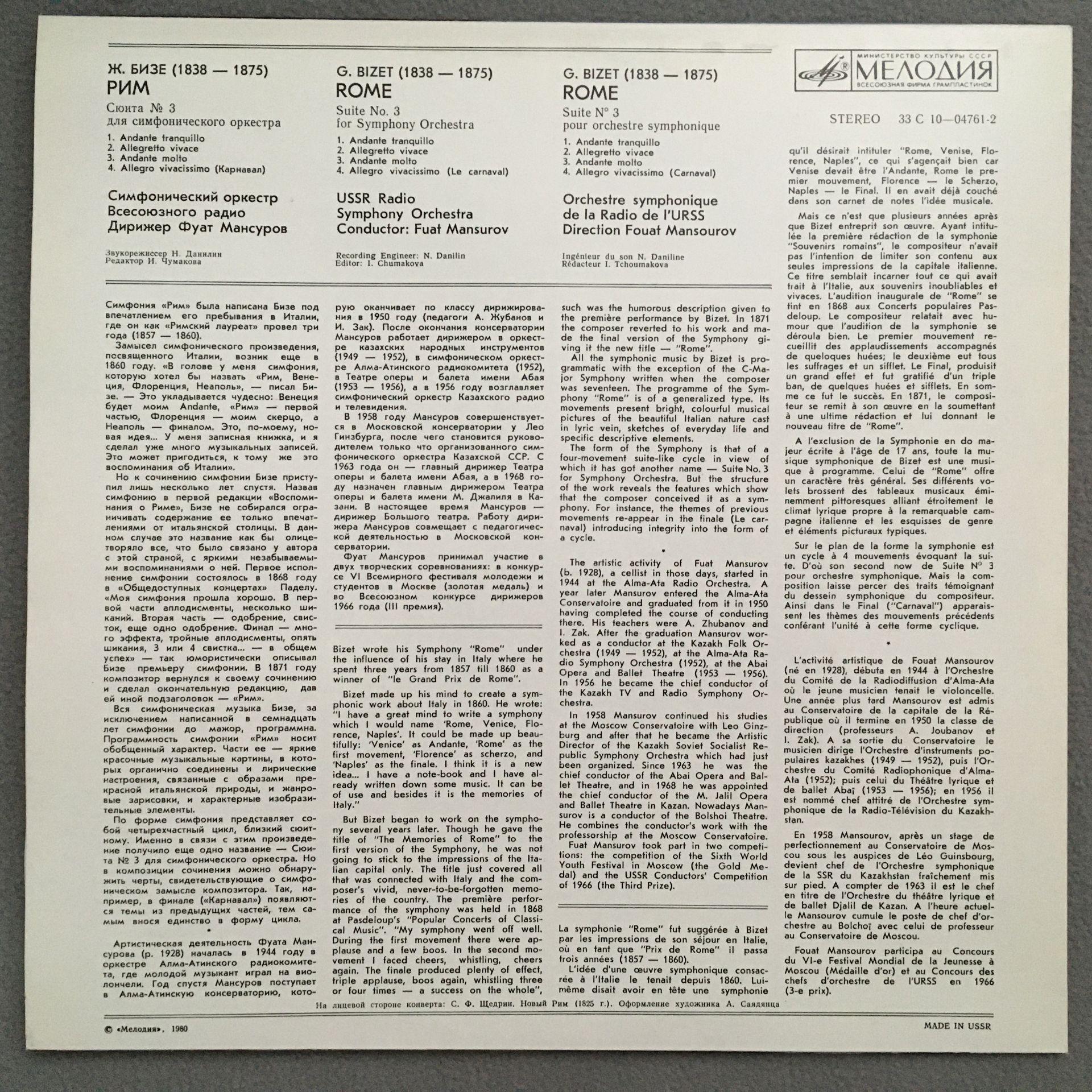 Q505 Bizet Rome Suite No.3 Mansurov Melodiya 33 C 10-04761-2 Stereo
