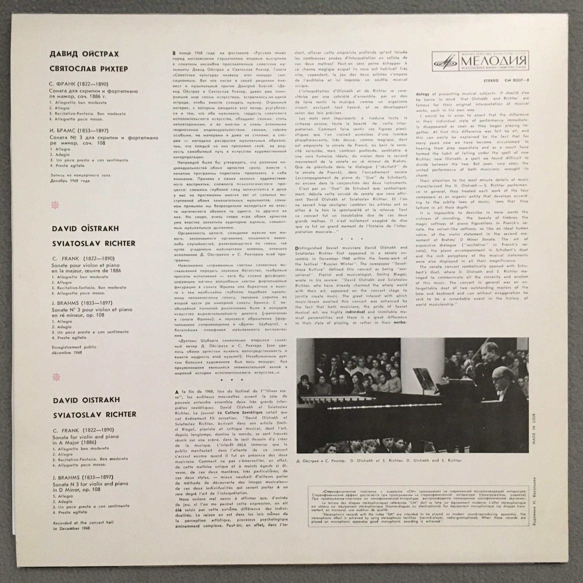Q506 Brahms Franck Violin Sonatas Oistrakh Richter Melodiya CM 02257-8 Stereo