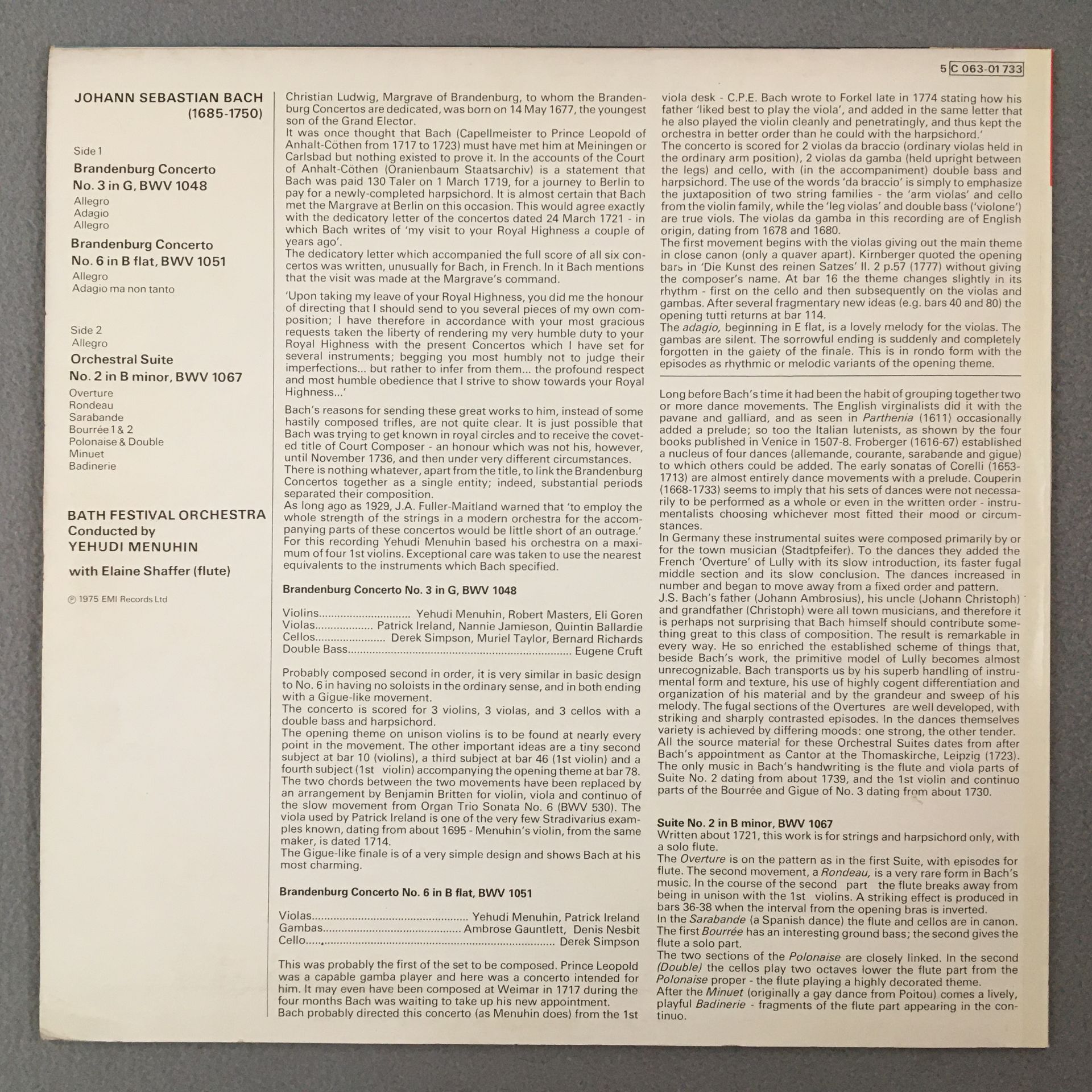 R215 Bach Brandenburg Concertos Menuhin EMI 5 C 063-01 733 Stereo