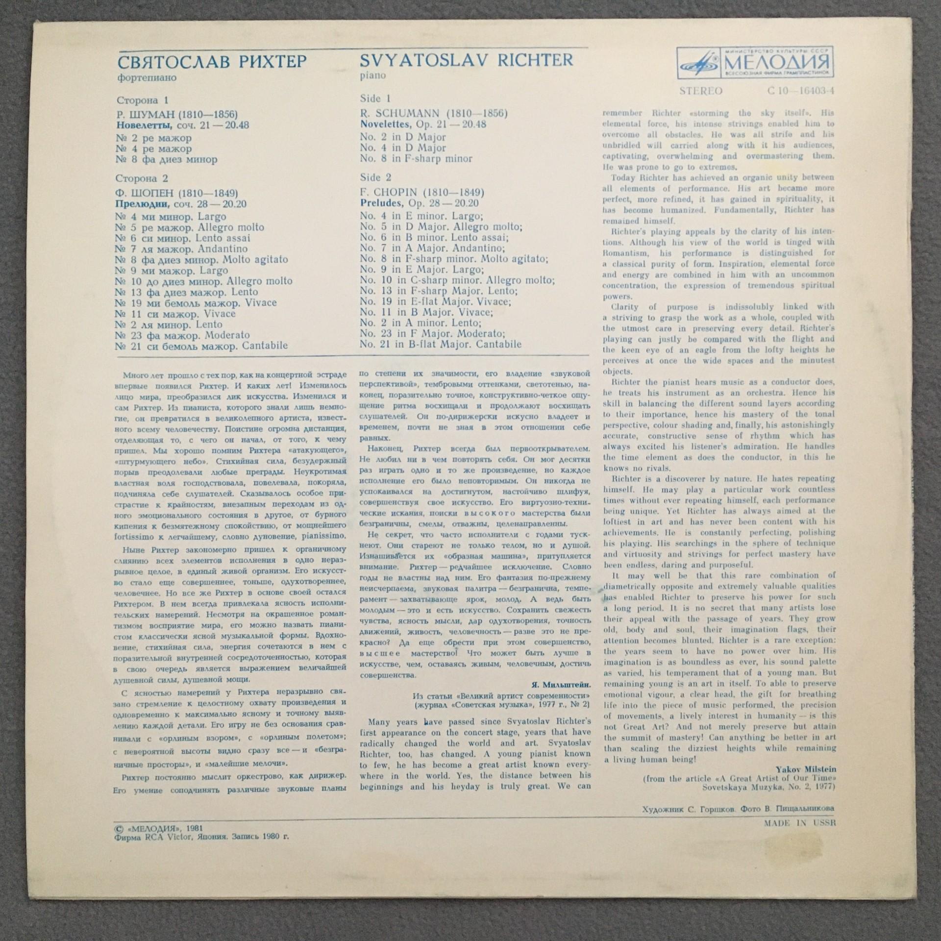 Q509 Chopin Preludes Schumann Noveletten Richter Melodiya C10-16403-4 Stereo
