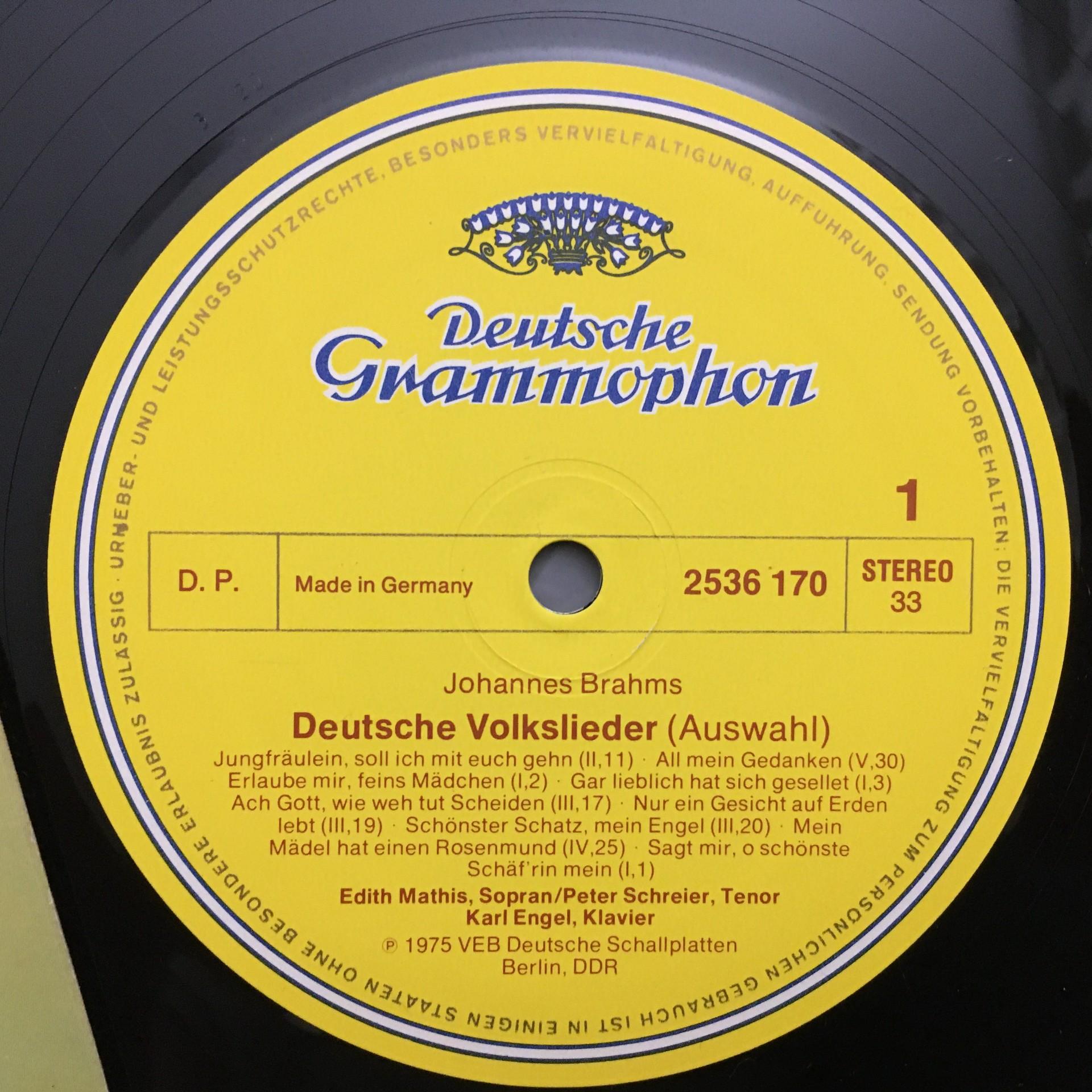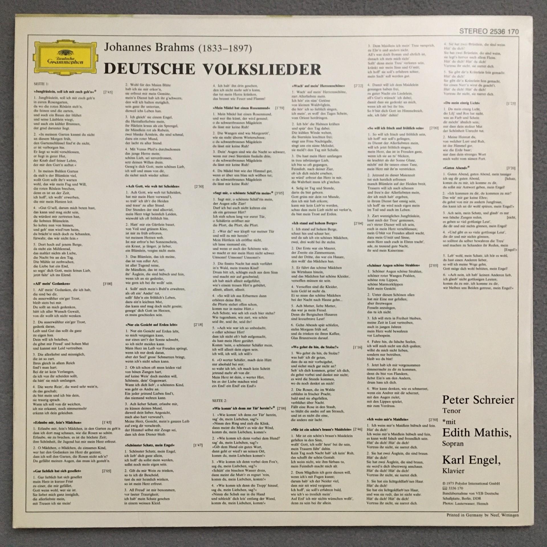 Q513 Brahms German Folk Songs Mathis Schreier Engel DGG 2536 170 Stereo