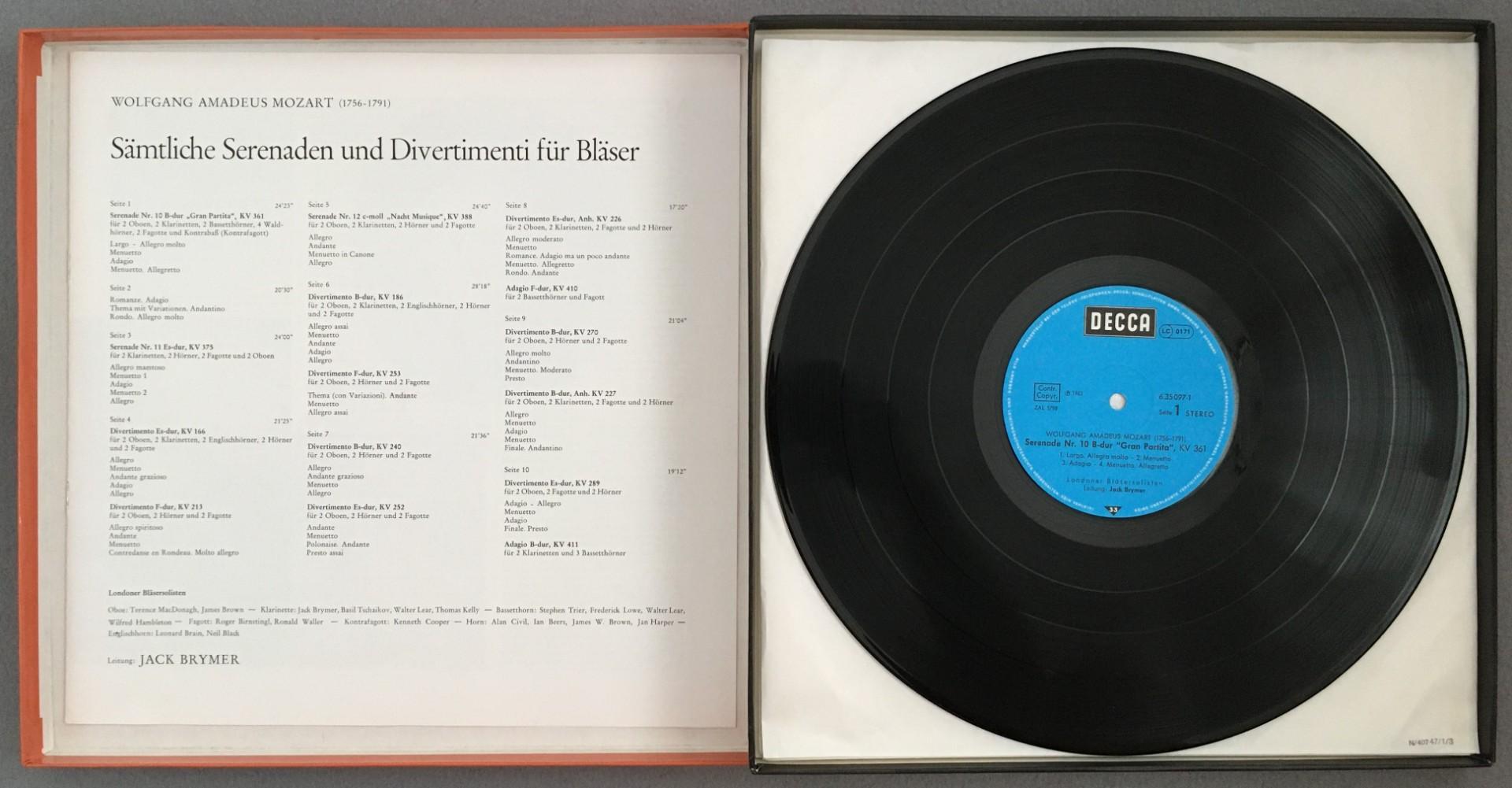 E012 Mozart Serenades & Divertimenti for Winds Brymer 5LP DECCA 6.35097 FK St