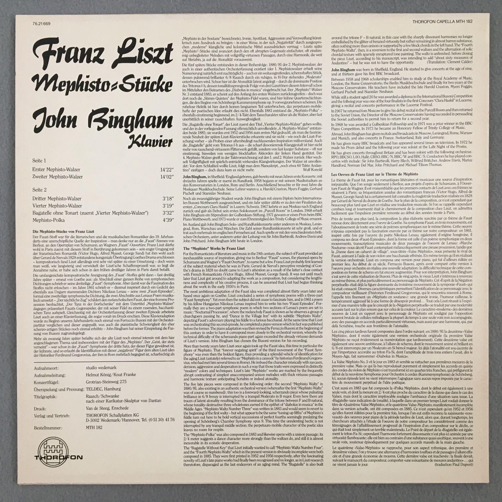 Q528 Liszt Mephisto Pieces Bingham Piano Thorofon Capella MTH 182 Stereo ED1