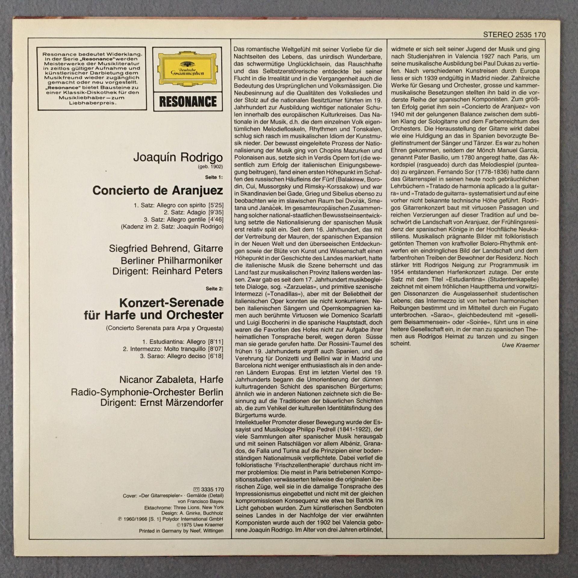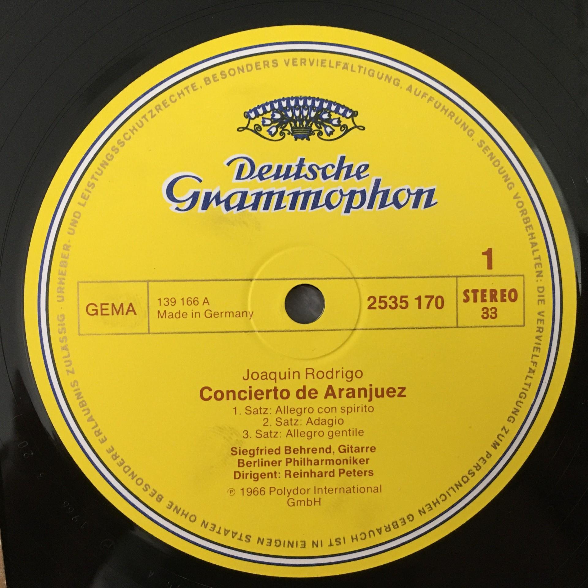 Q543 Rodrigo Concertos Behrend Guitar Zabaleta Harp Peters DGG 2535 170 Stereo